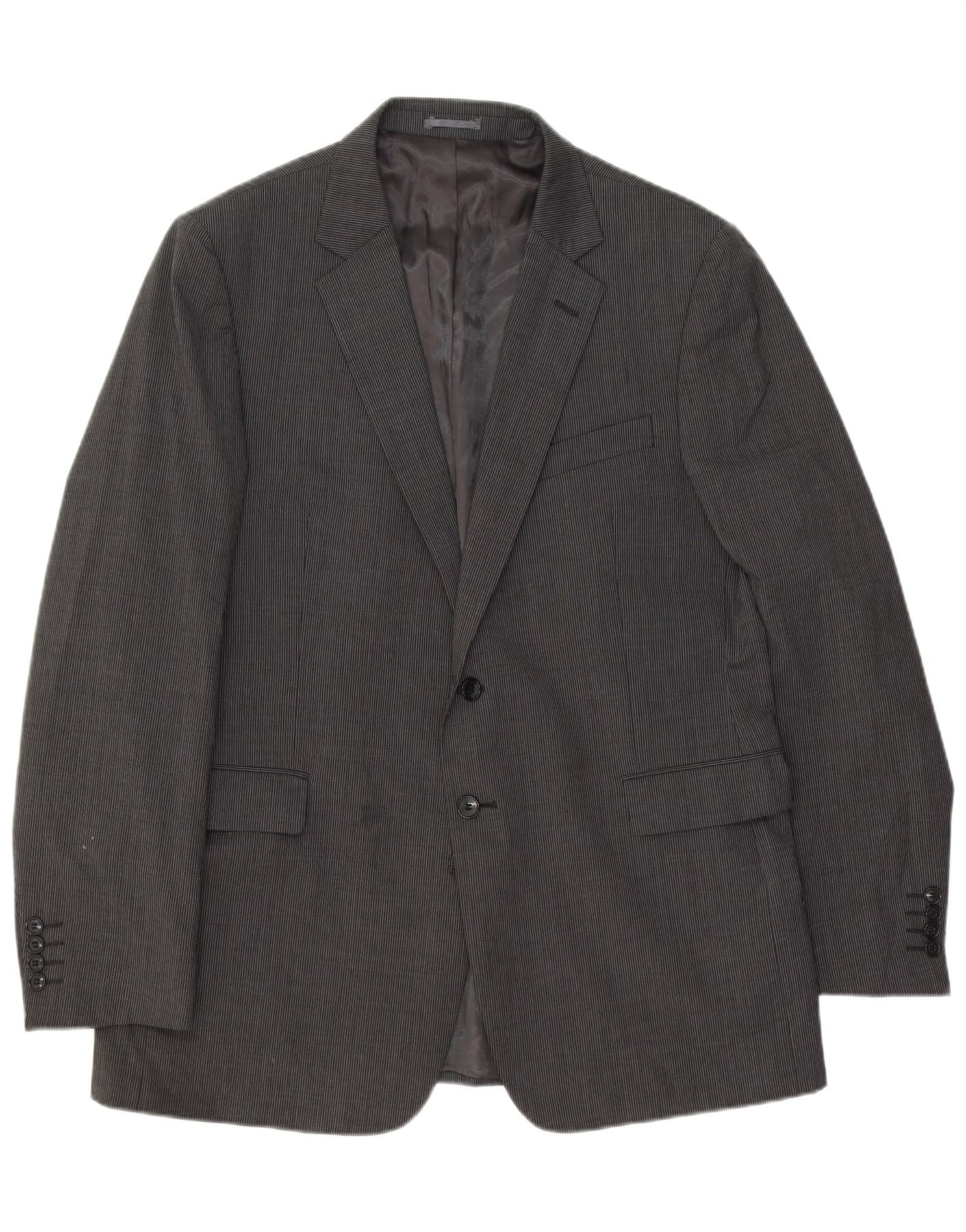 JAEGER Mens 2 Button Blazer Jacket UK 44 2XL Grey Pinstripe Polyester