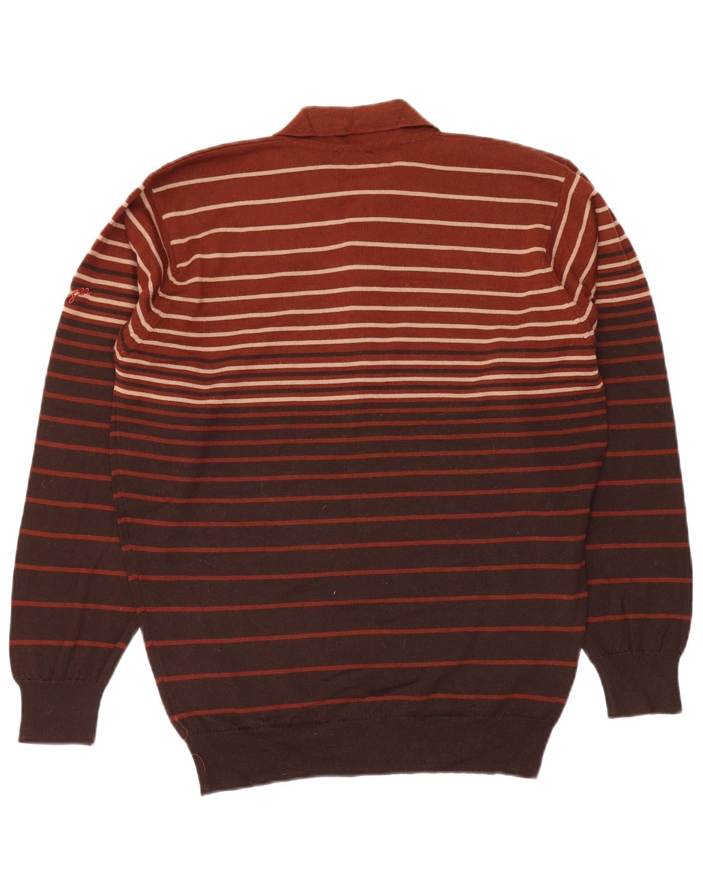 Jaeger Мужской свитер-поло с воротником-поло, маленький шерстяной свитер в коричневую полоску