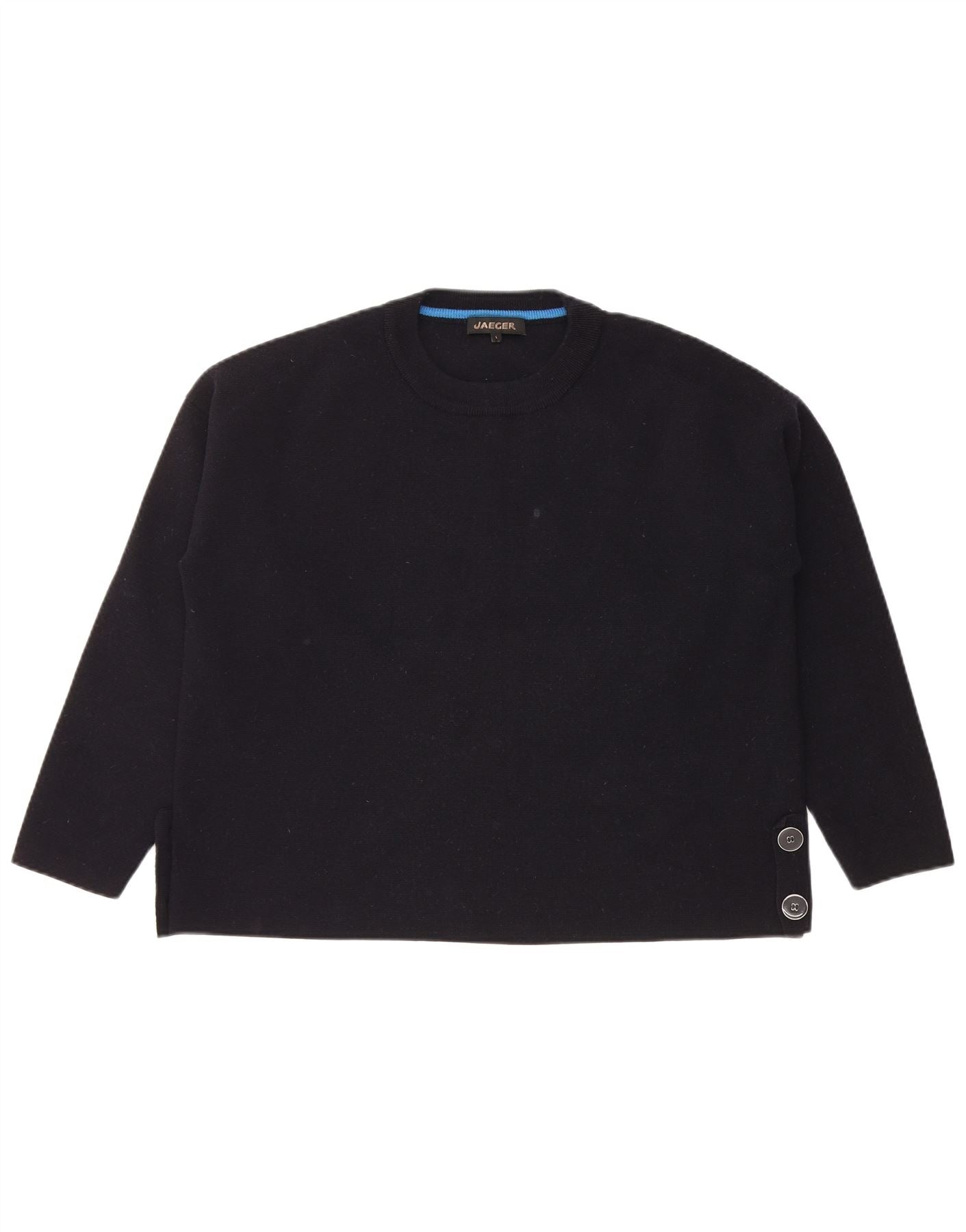- Описание ИИ: Женский джемпер с круглым вырезом Jaeger выполнен из мягкого трикотажа черного цвета. Имеет классический круглый вырез и длинные рукава. Стандартная посадка обеспечивает комфортное ношение. Боковые кромки украшены изящными пуговицами, придающими изделию изысканный вид. Этот дизайн пуловера вневременной и универсальный, идеально подходит для повседневной элегантности.