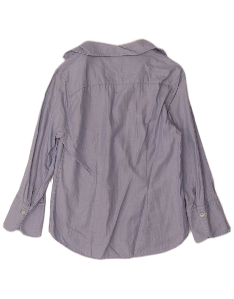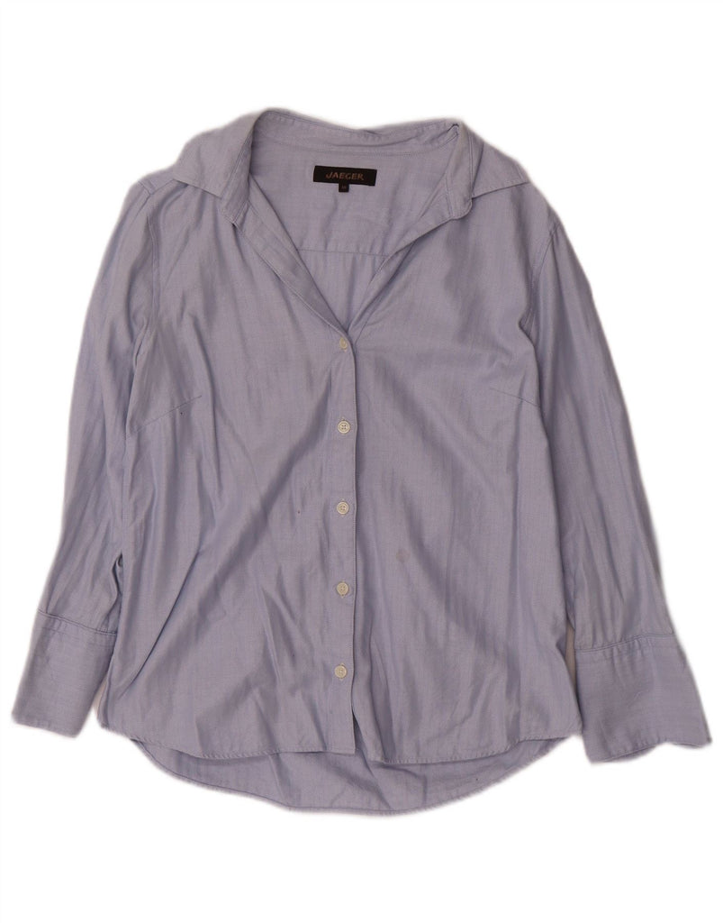 JAEGER Womens Loose Fit Shirt UK 10 Small Blue Herringbone Cotton