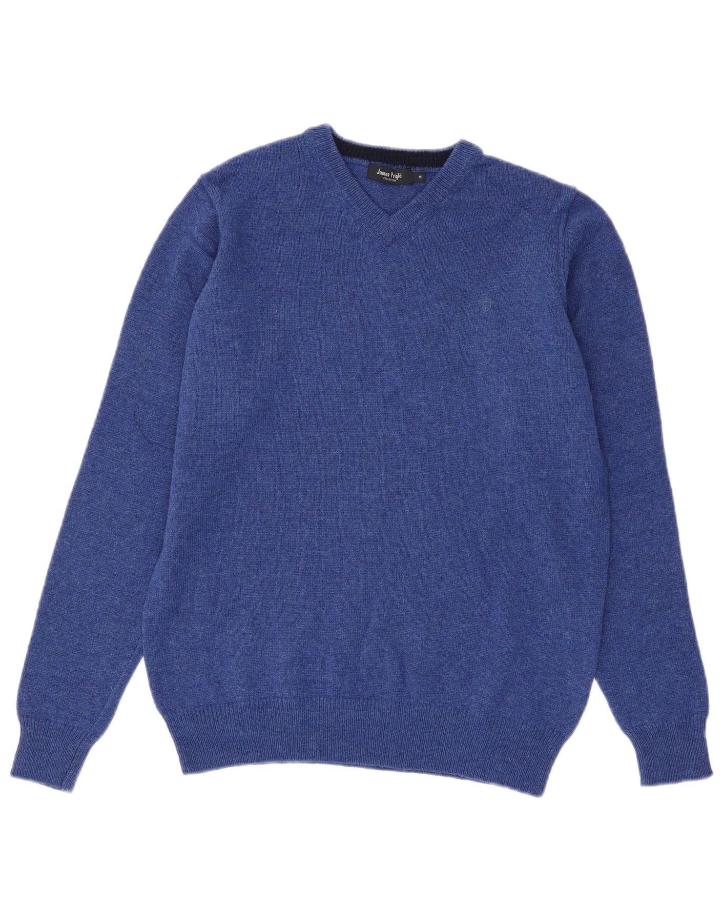 JAMES PRINGLE Mens V-Neck Jumper Sweater Medium Blue New Wool