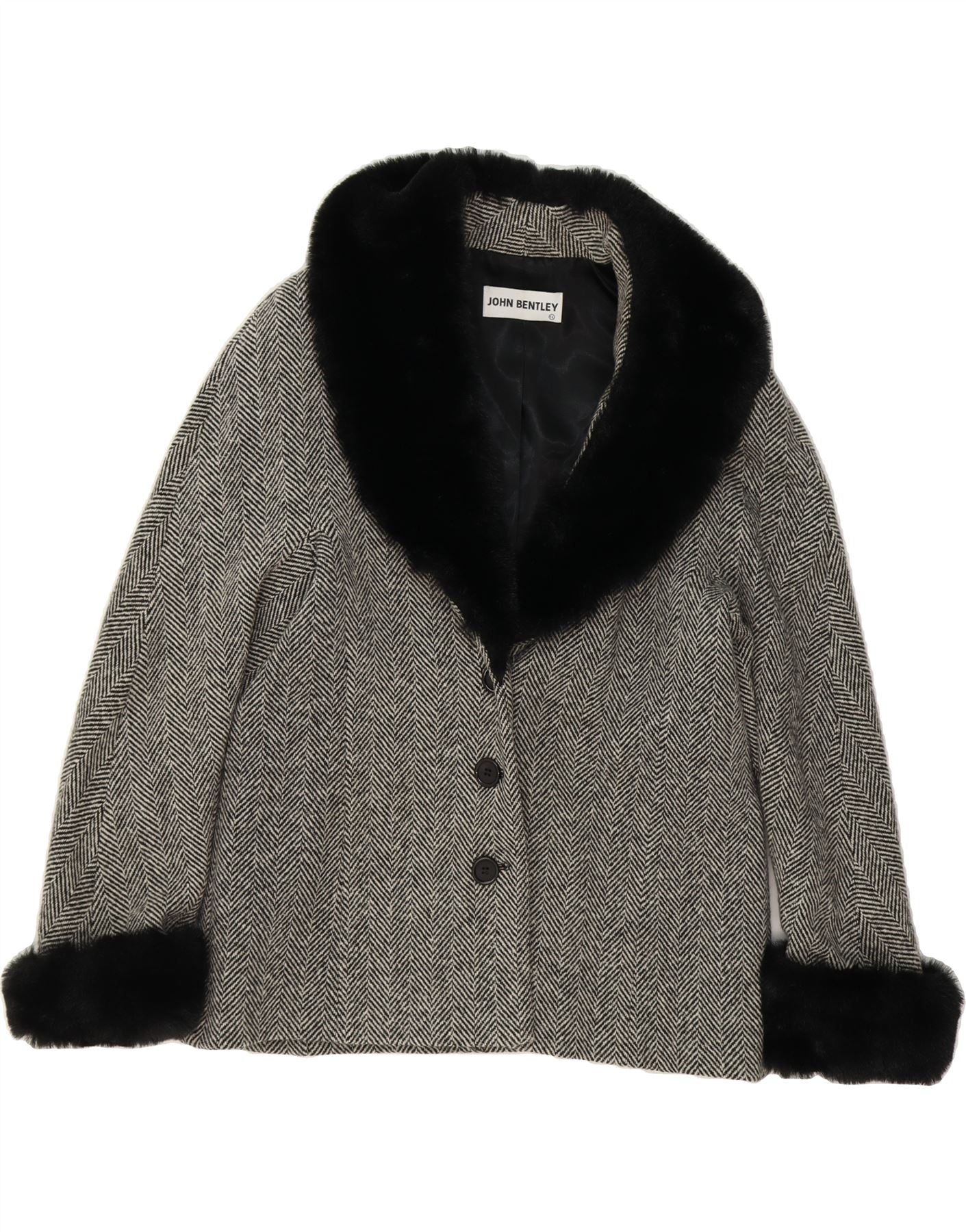 JOHN BENTLEY Womens 3 Button Blazer Jacket UK 14 Large Black Herringbone