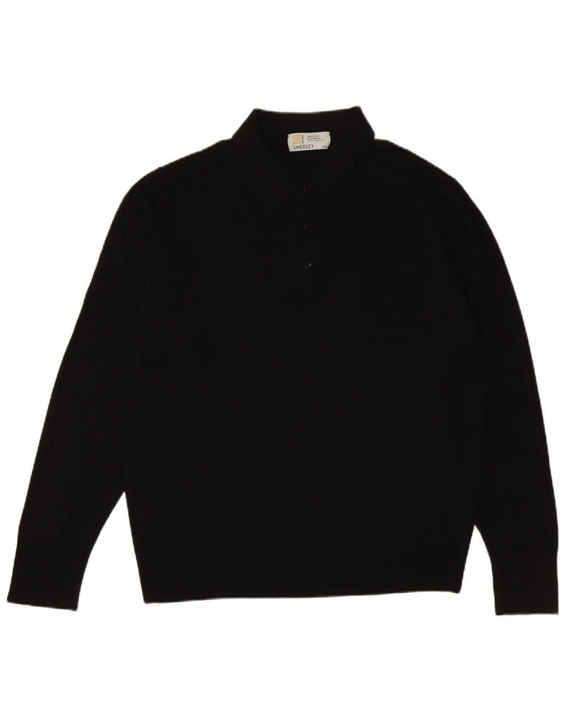 JOHN SMEDLEY Mens Polo Neck Jumper Sweater XL Black Wool
