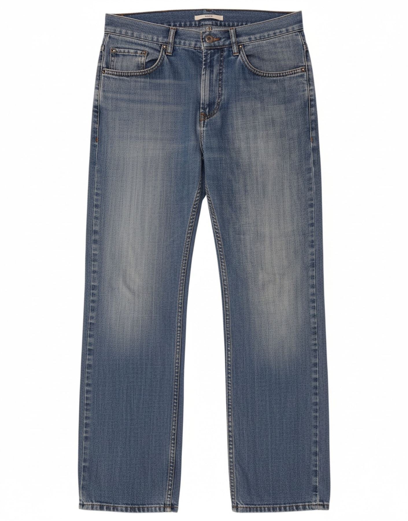 - AI Description: These Joop mens straight jeans are crafted from classic blue denim. They feature a low waist and a button closure for a secure fit. The straight leg design offers a timeless silhouette. A regular fit ensures comfortable wear. Practical pockets are included. A subtle logo accent adds a signature touch.