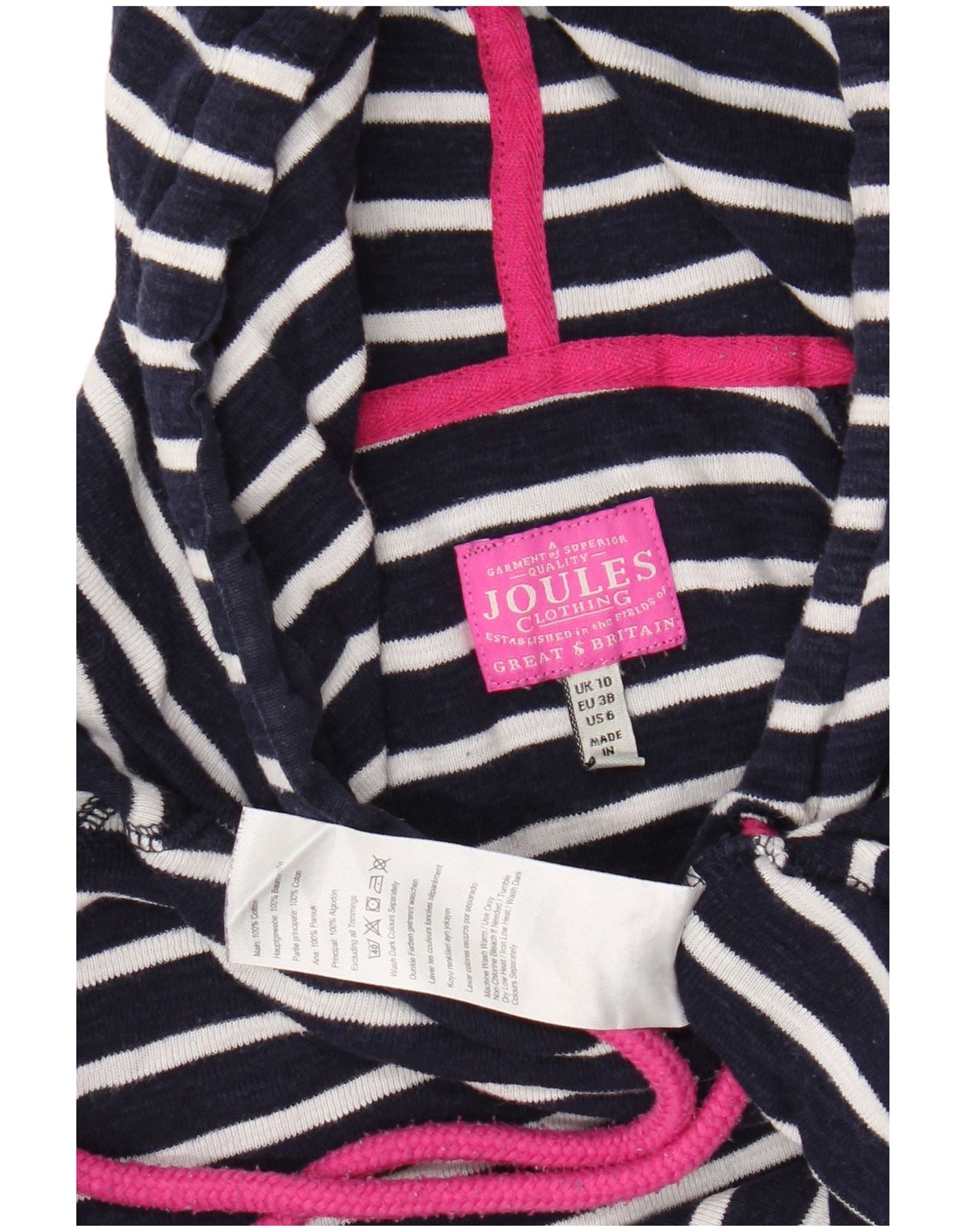 Женский топ с капюшоном Joules с длинным рукавом, Великобритания, 10 маленьких размеров, темно-синий, в полоску, хлопок