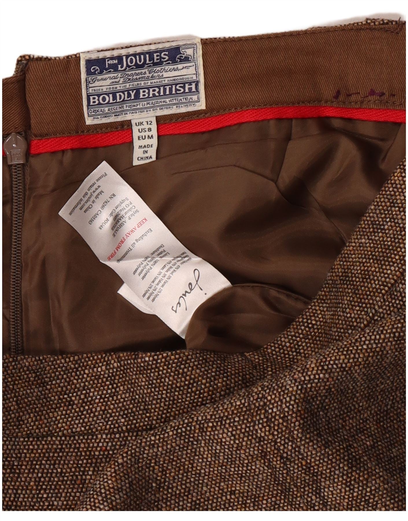 JOULES Женская юбка-карандаш UK 12 Medium W28 Коричневая шерсть