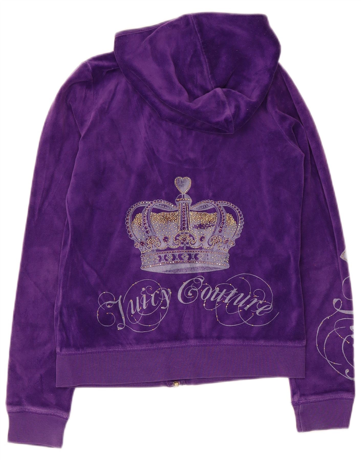 JUICY COUTURE Girls Graphic Zip Hoodie Sweater 13-14 Years Purple Cotton