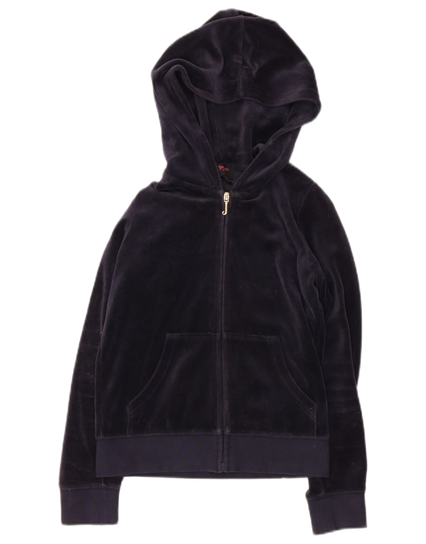 JUICY COUTURE Свитер с капюшоном и молнией с графическим рисунком для девочек 9–10 лет, темно-синий, хлопок
