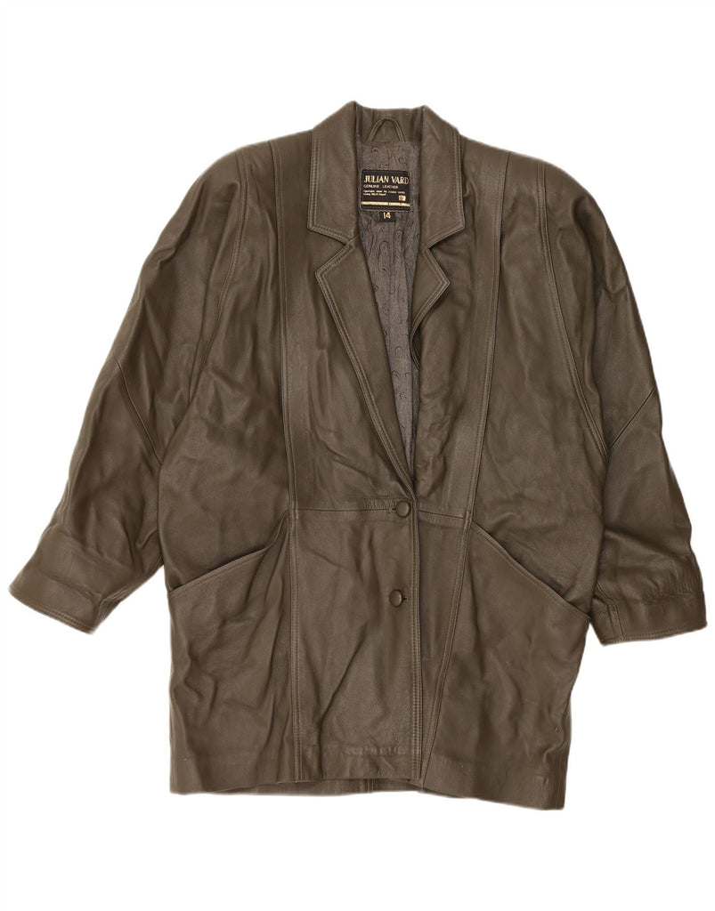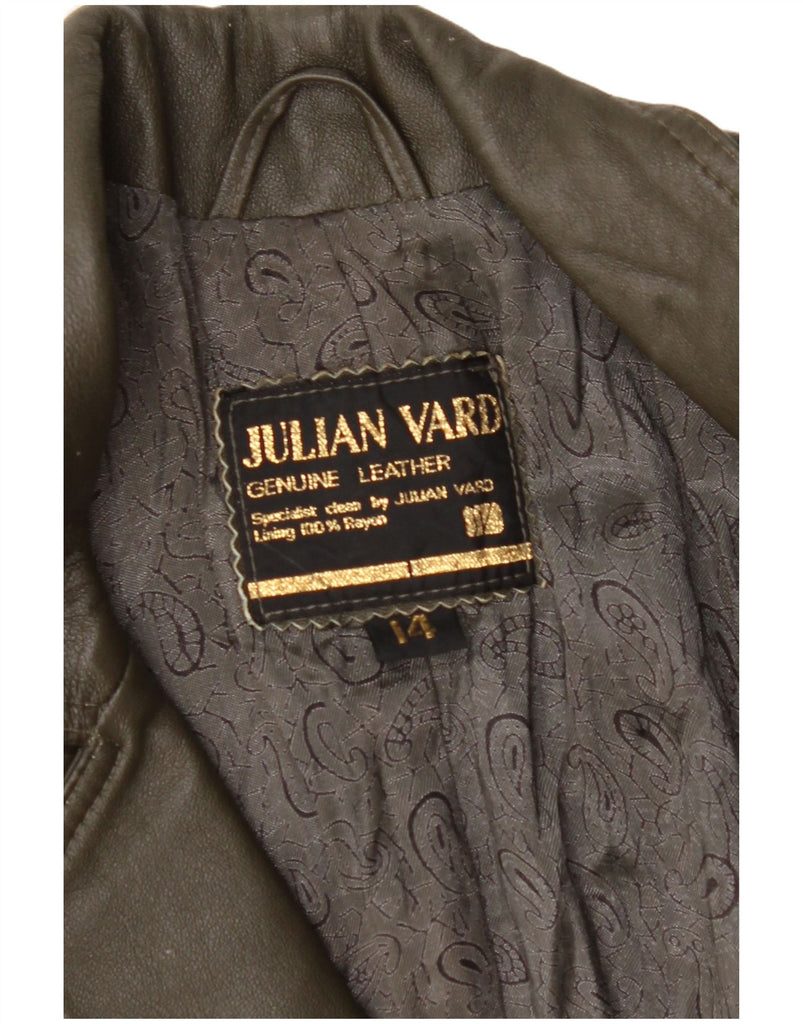 JULIAN VARD Женское кожаное пальто UK 14 большое зеленое кожаное