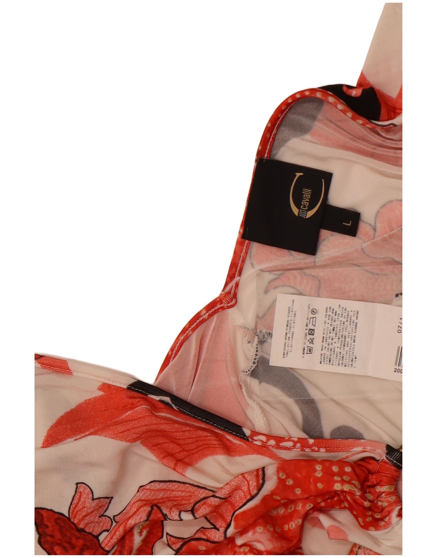 Женская блузка Just Cavalli Top UK 14, большой размер, эластан с белым цветочным принтом
