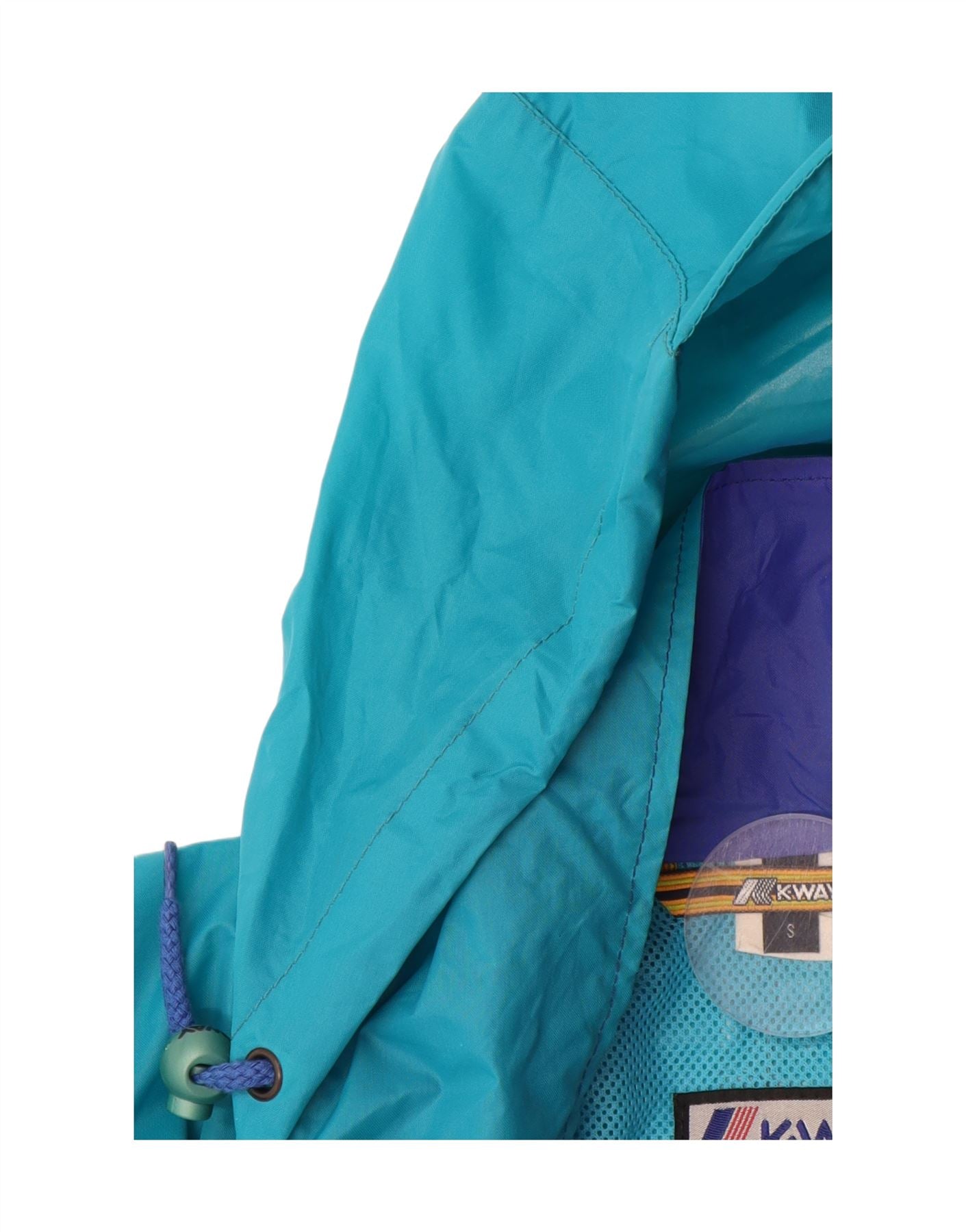 K-WAY Mens Hooded Rain Jacket UK 36 Small Blue Colourblock Polyamide