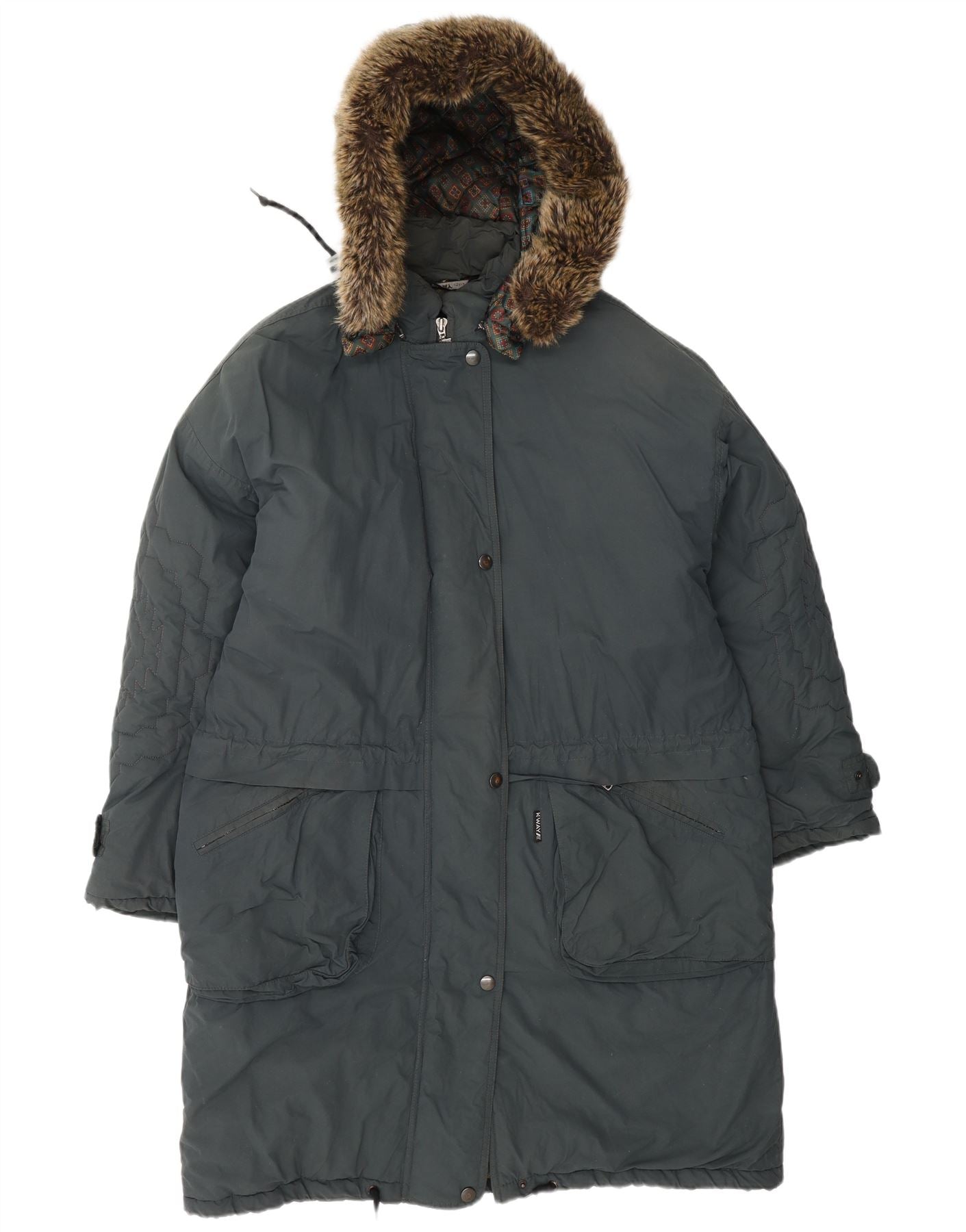 K-WAY Женское стеганое пальто с капюшоном UK 20 2XL Серый хлопок
