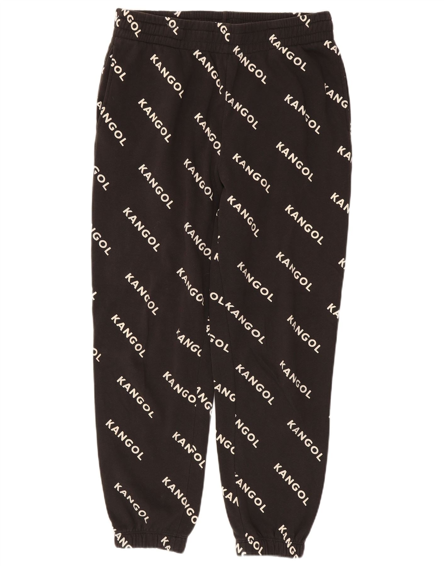 KANGOL Womens Graphic Tracksuit Trousers Joggers UK 12 Medium Black Cotton
