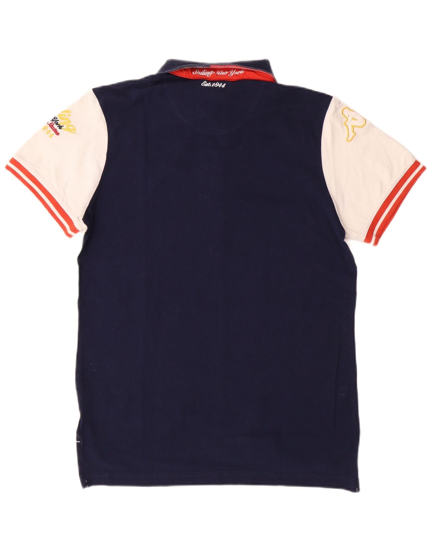 KAPPA Мужская рубашка поло с графическим рисунком, средний темно-синий, хлопок с цветными блоками