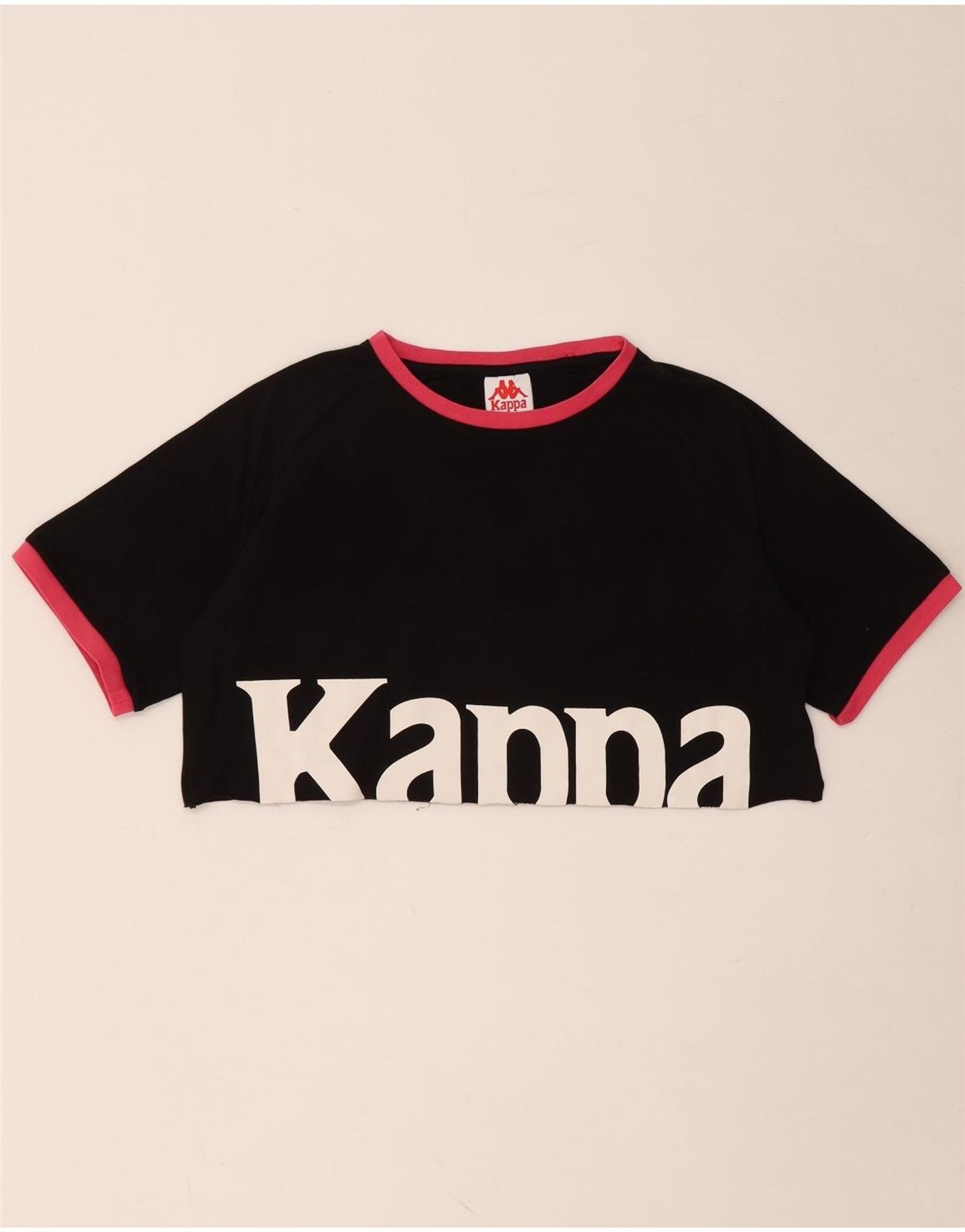 KAPPA Женская укороченная футболка оверсайз с рисунком, топ UK 10, маленький черный хлопок