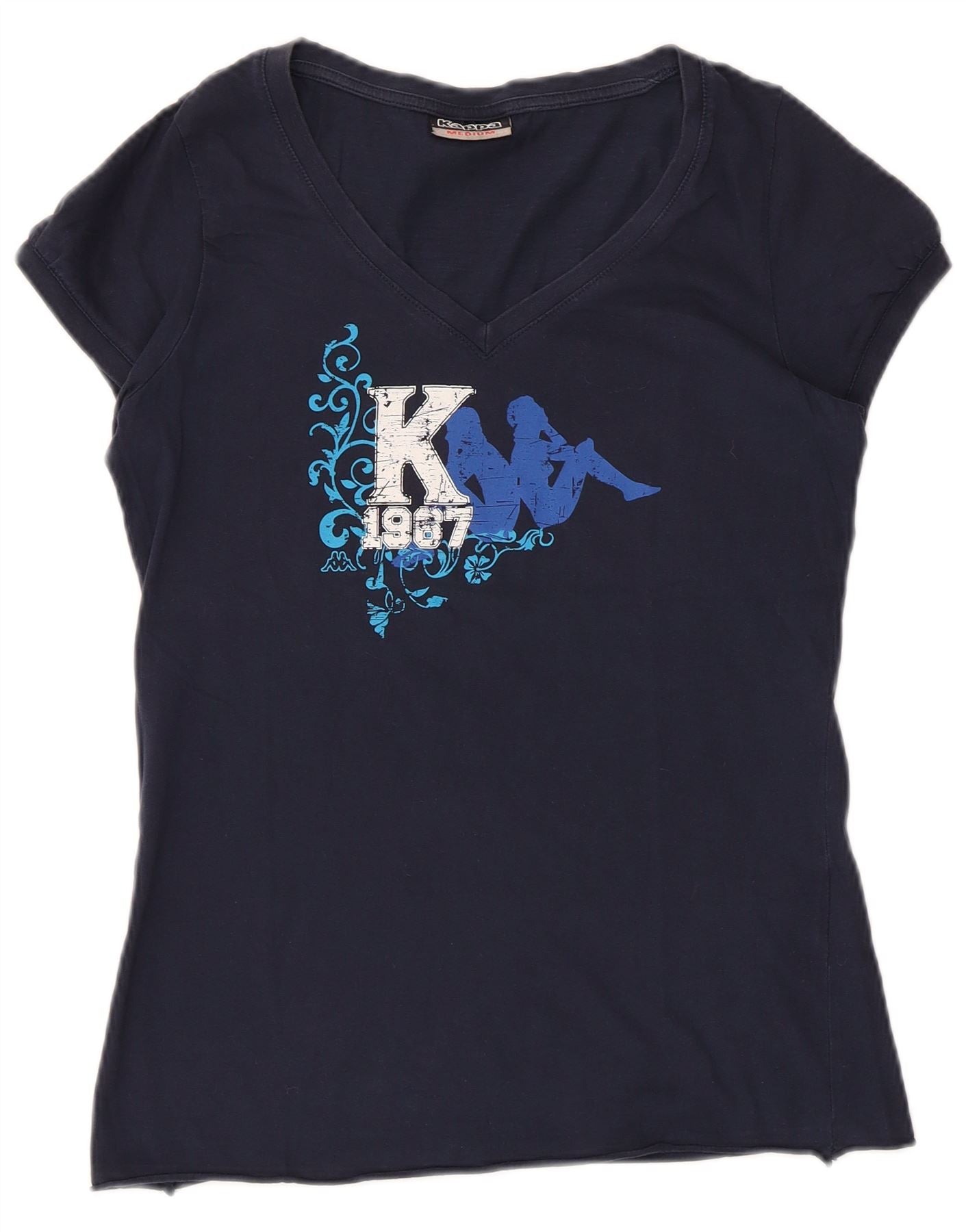 KAPPA Женская футболка с рисунком Top UK 12 Medium Navy Blue Хлопок