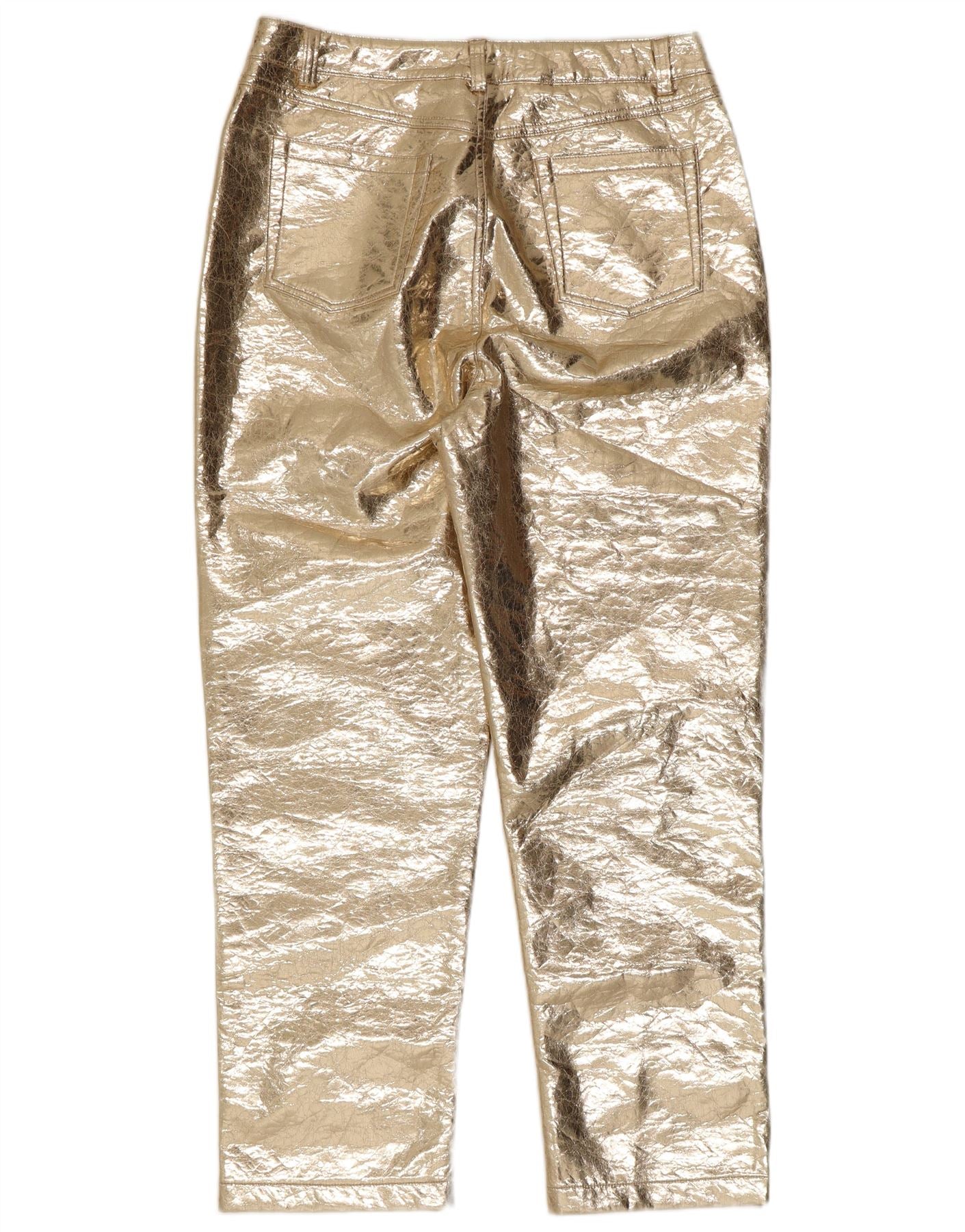 KAREN MILLEN Womens Faux Leather Trousers UK 14 Large W32 L28 Gold