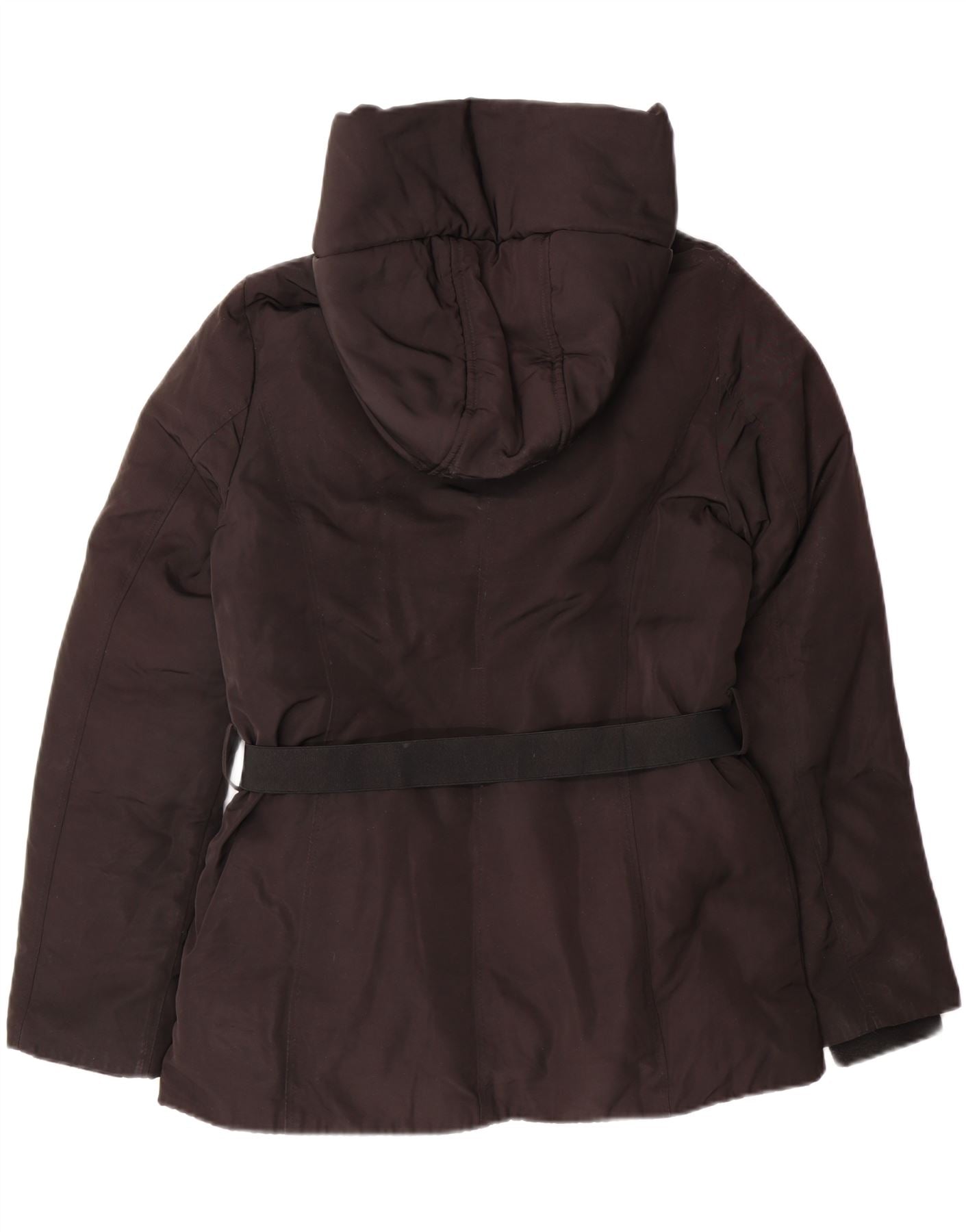 KAREN MILLEN Womens Hooded Padded Jacket UK 10 Small Brown Polyester
