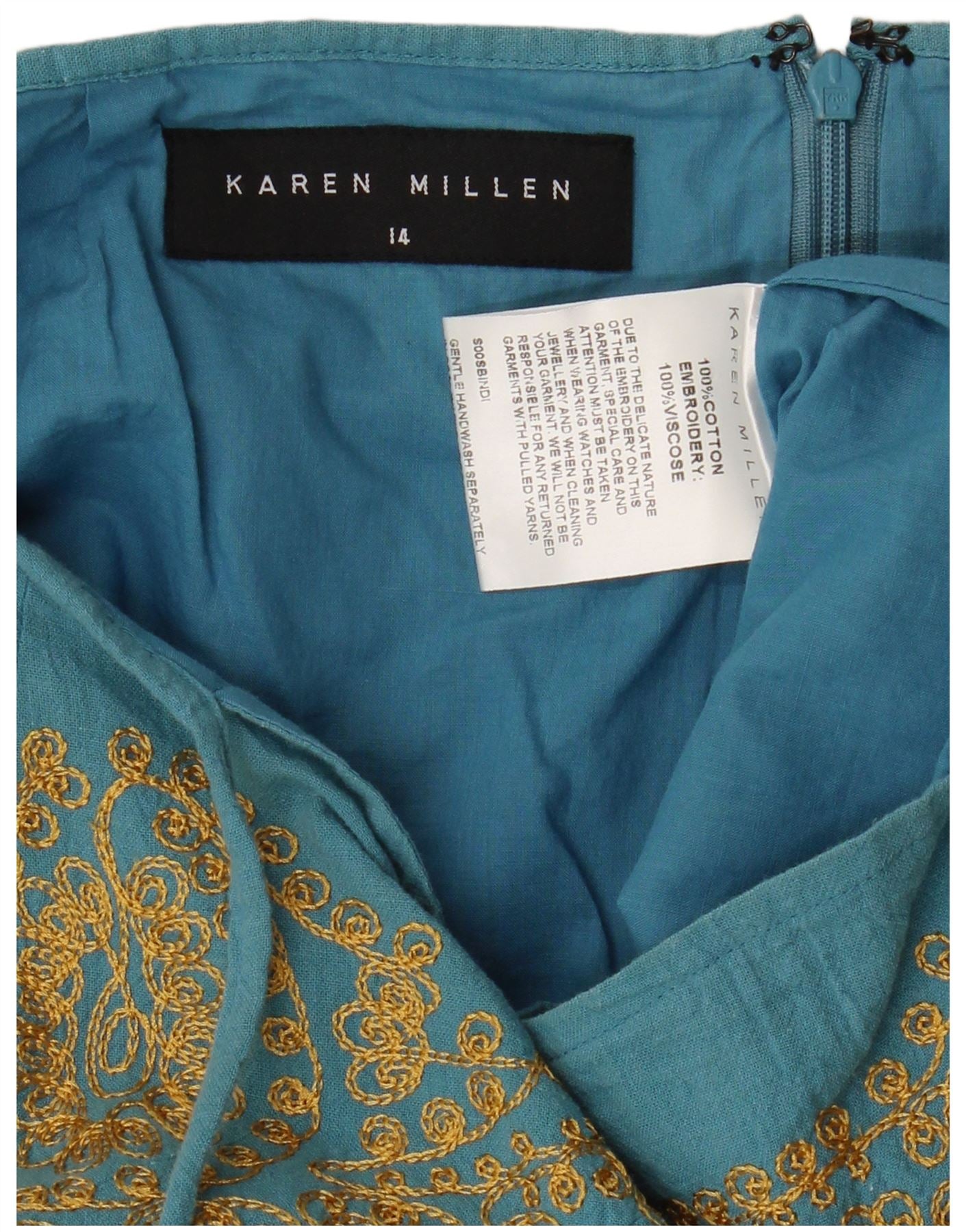KAREN MILLEN Womens Mini Skirt UK 14 Large W32 Blue Floral Cotton