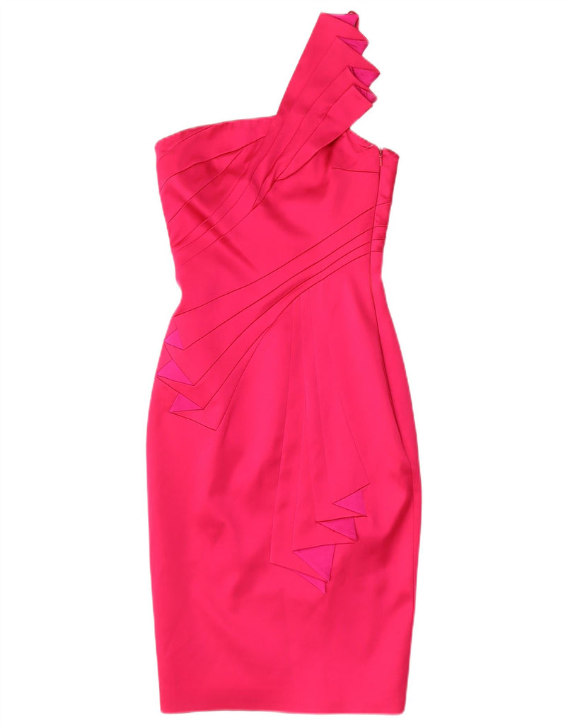 KAREN MILLEN Womens One Shoulder Dress UK 8 Small Pink Acetate