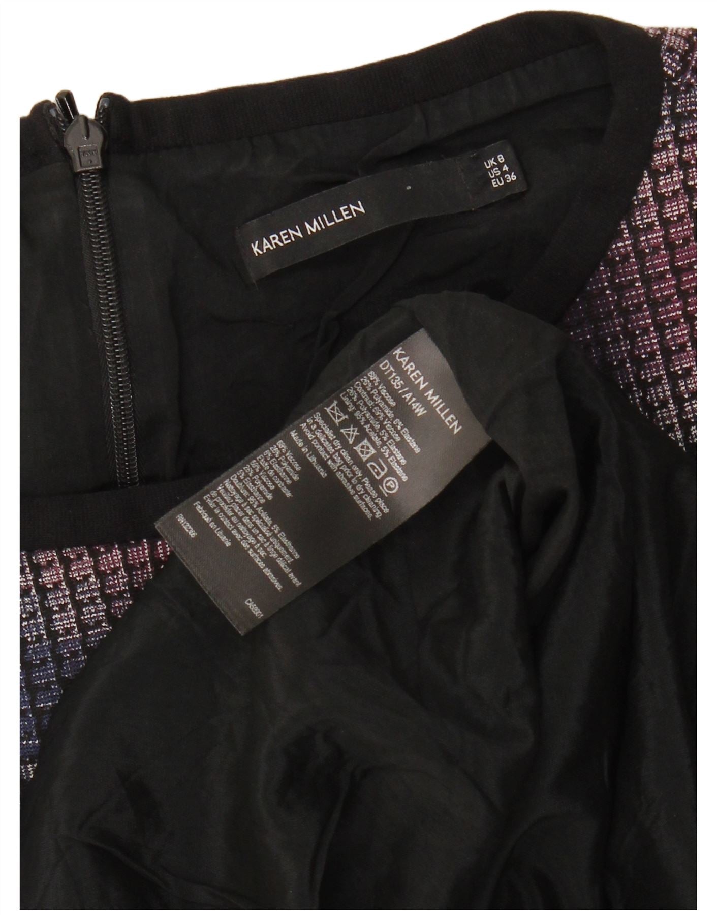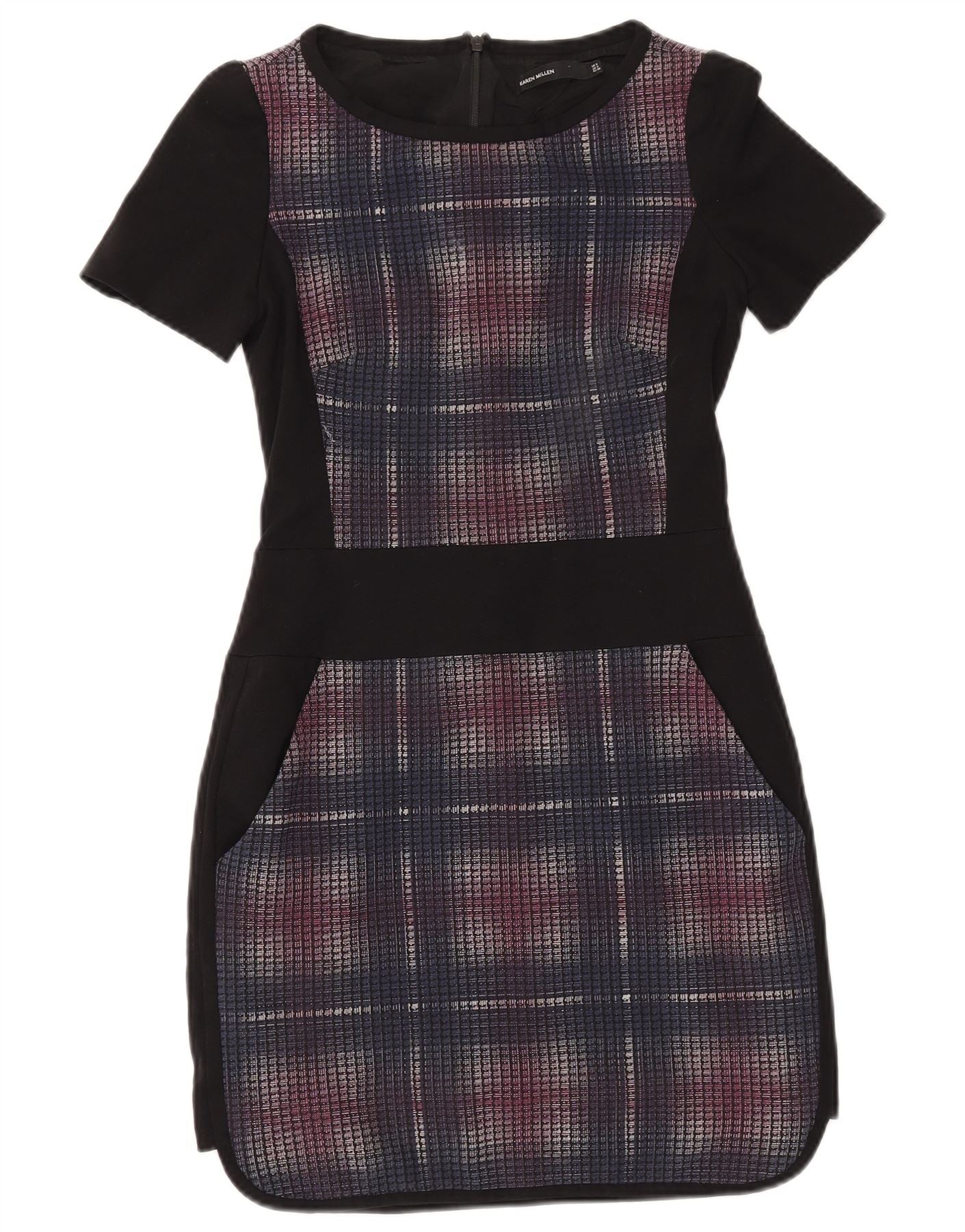 KAREN MILLEN Womens Sheath Dress UK 8 Small Black Check Viscose