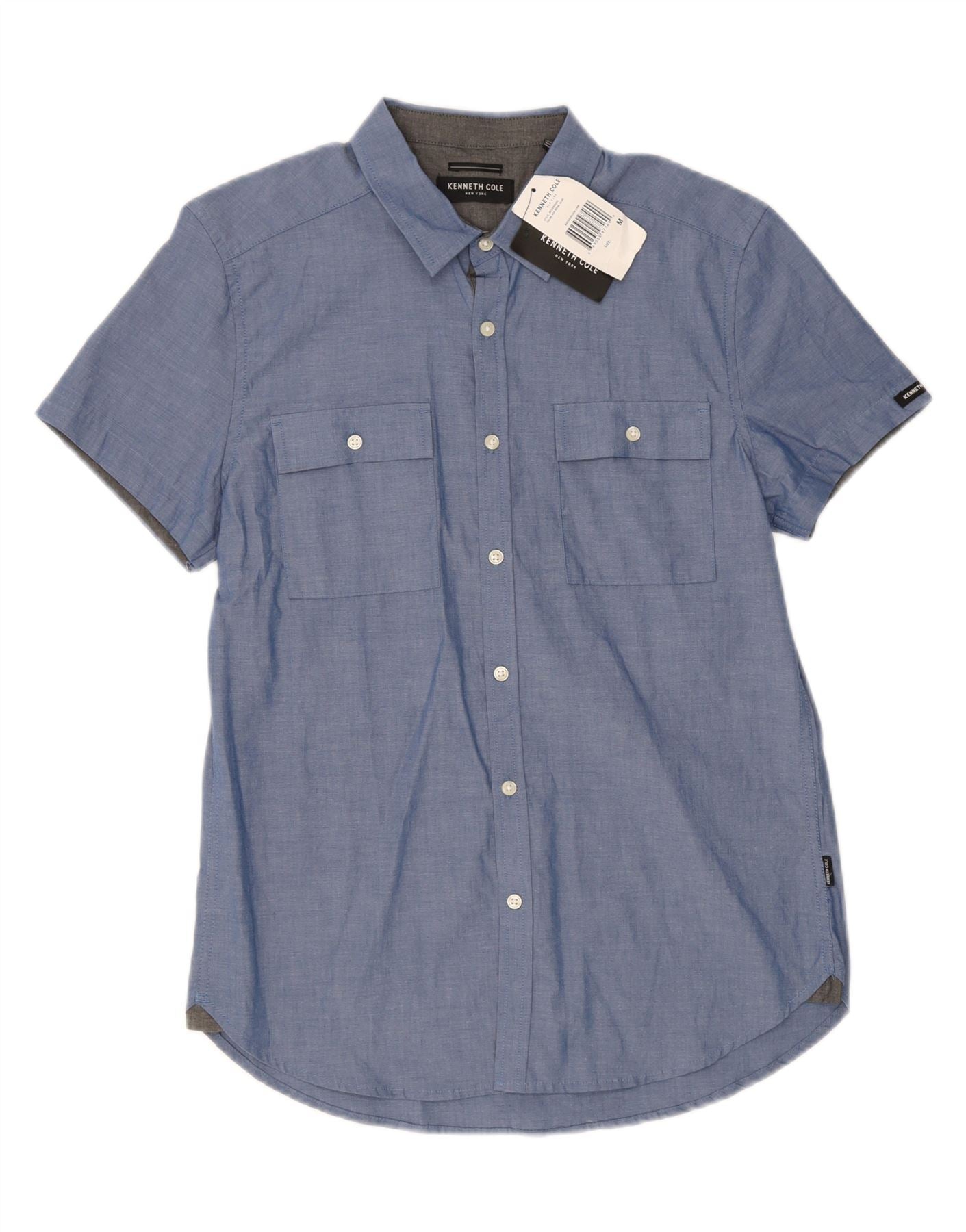 KENNETH COLE Mens Short Sleeve Shirt Medium Blue Cotton