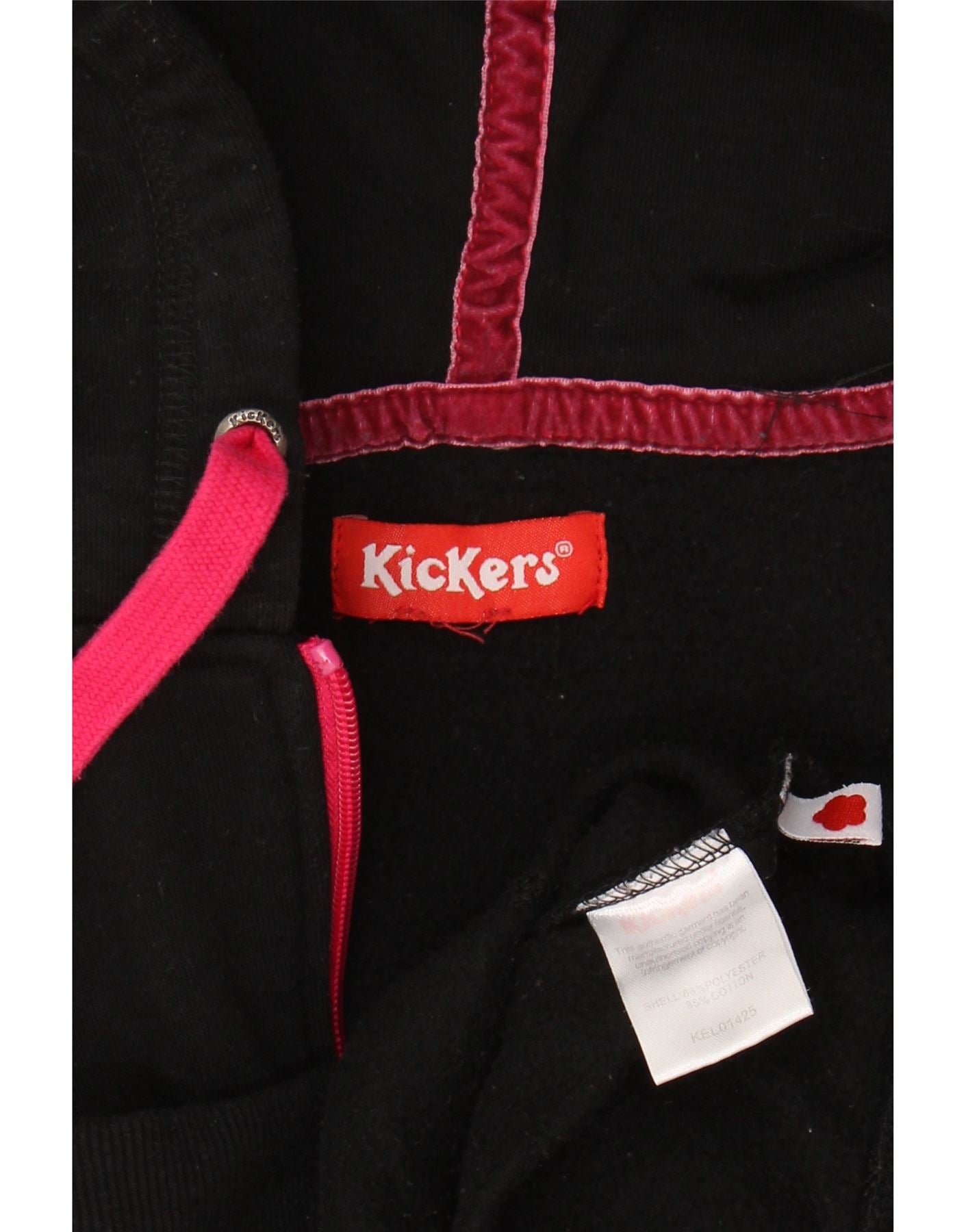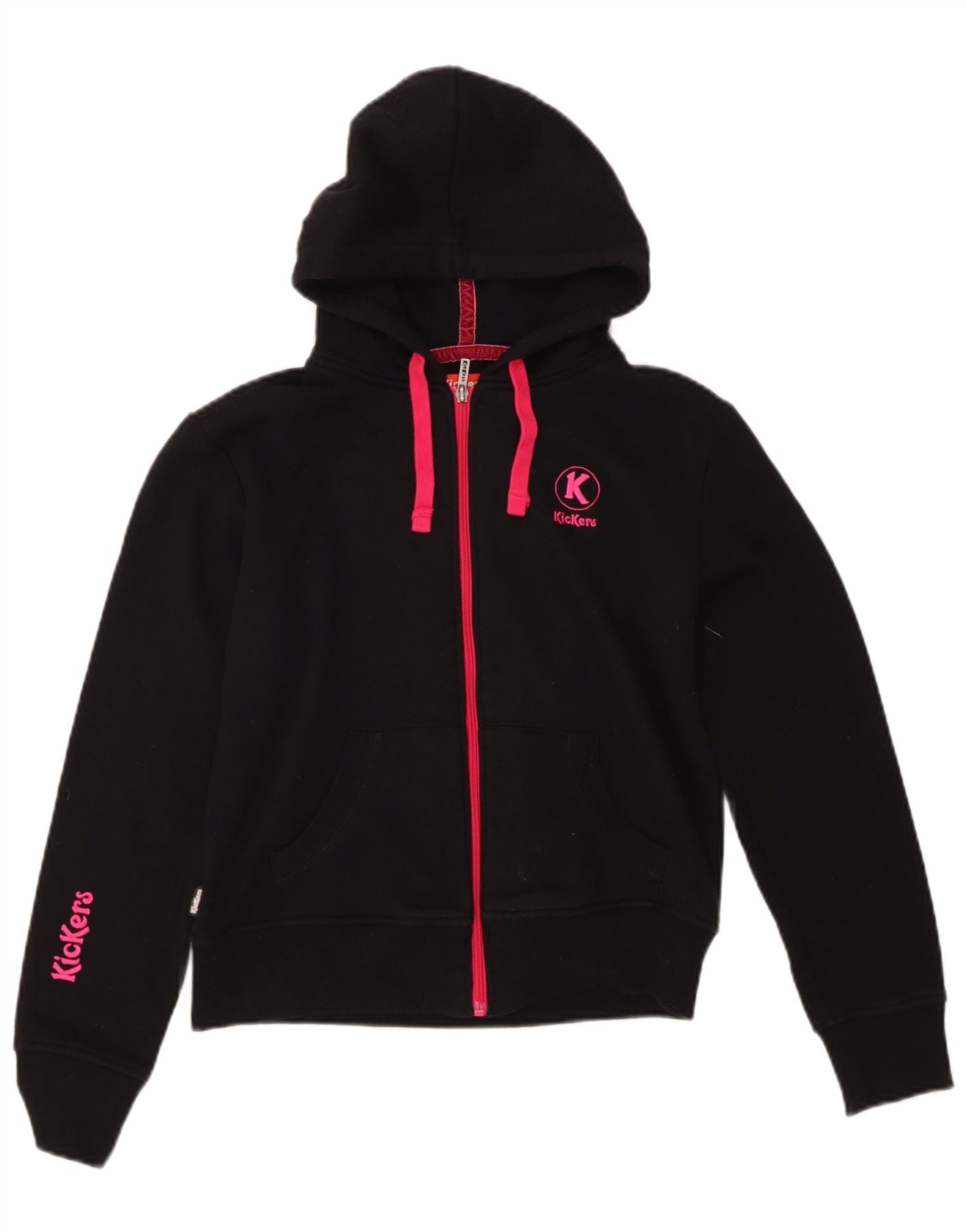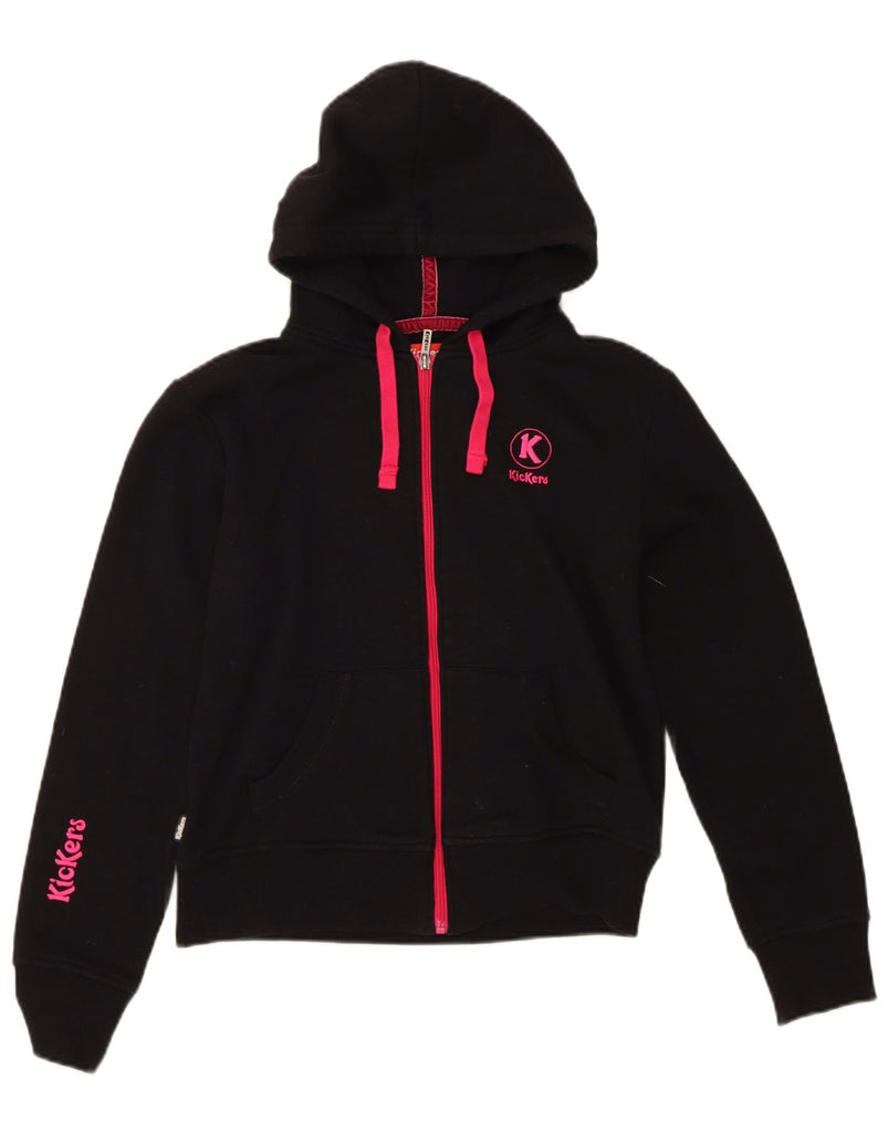 KICKERS Womens Graphic Zip Hoodie Sweater UK 14 Medium Black Cotton
