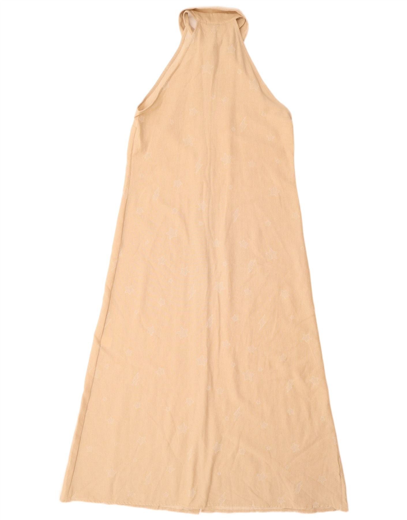 KIKISIX Женское платье макси без рукавов с абстрактным узором, Великобритания 14, средний бежевый
