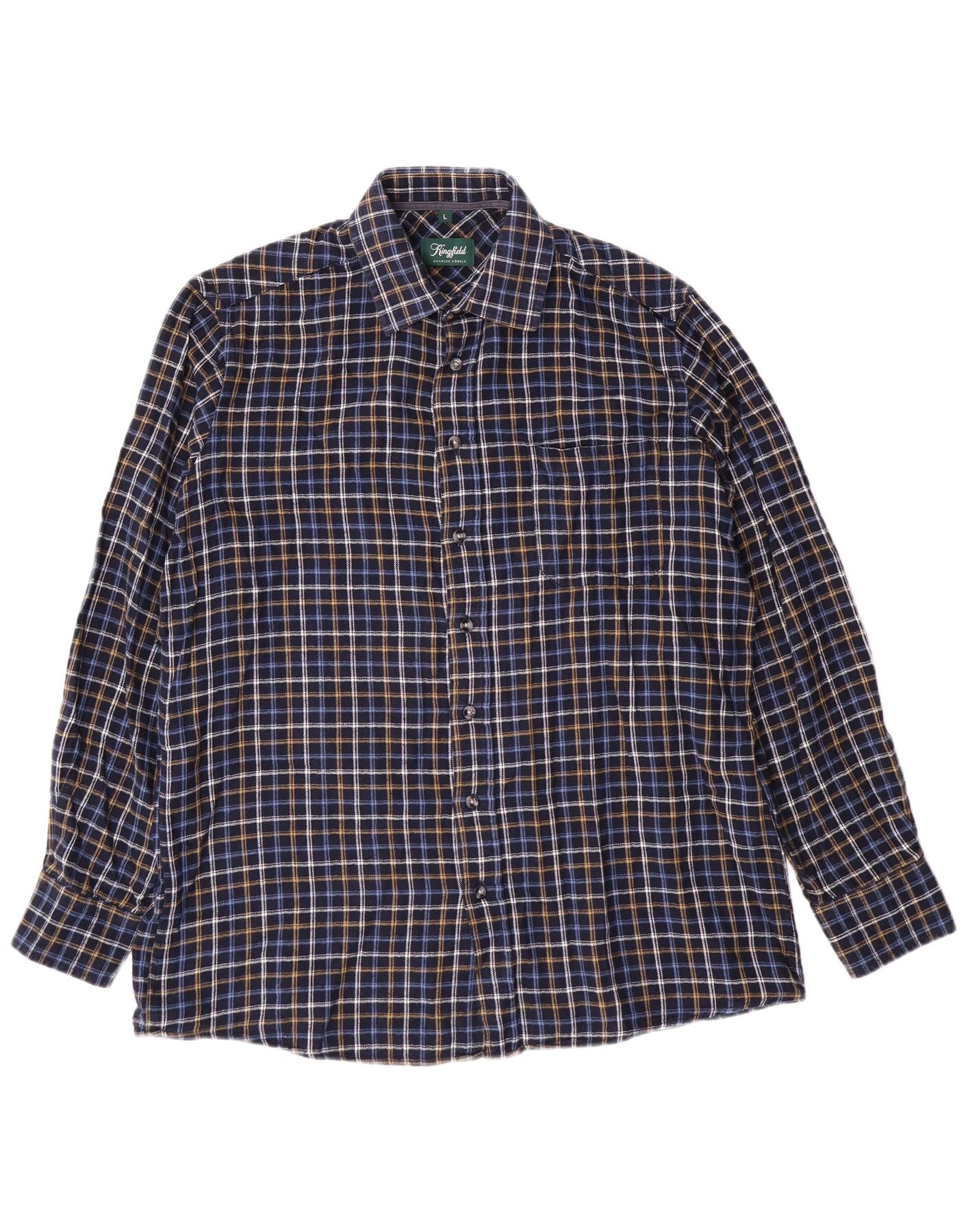 KINGFIELD Мужская фланелевая рубашка большого размера, темно-синяя клетка, хлопок