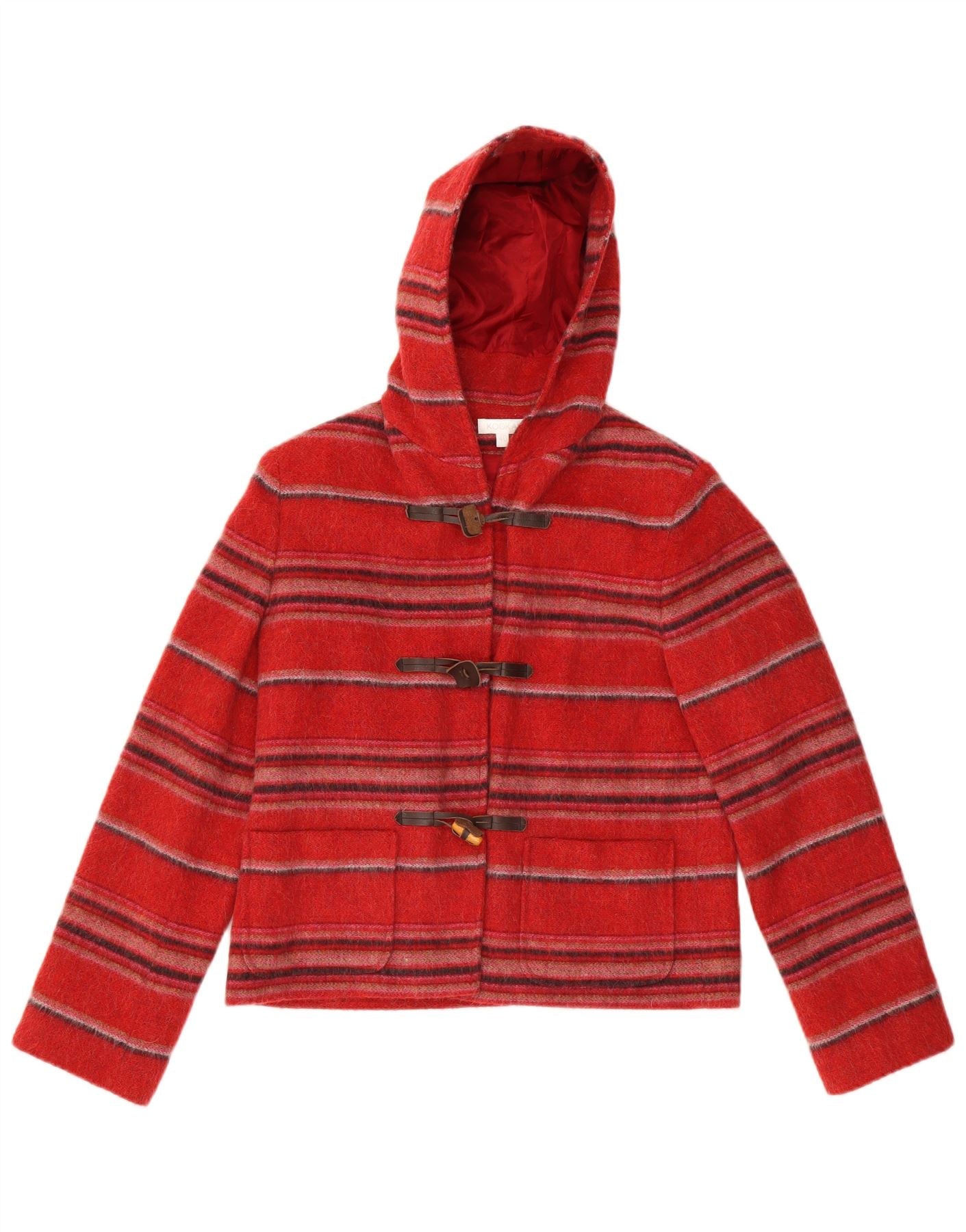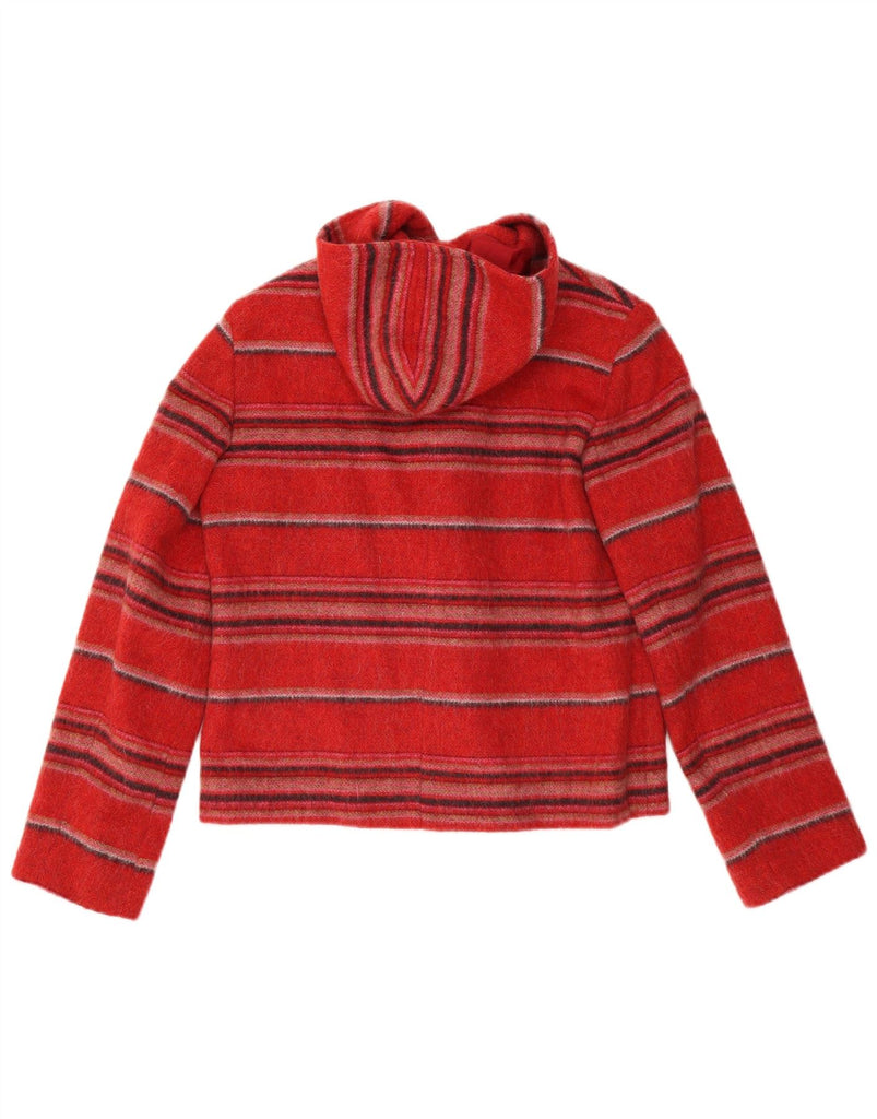 KOOKAI Womens Hooded Duffle Jacket IT 40 Small Red Striped Wool