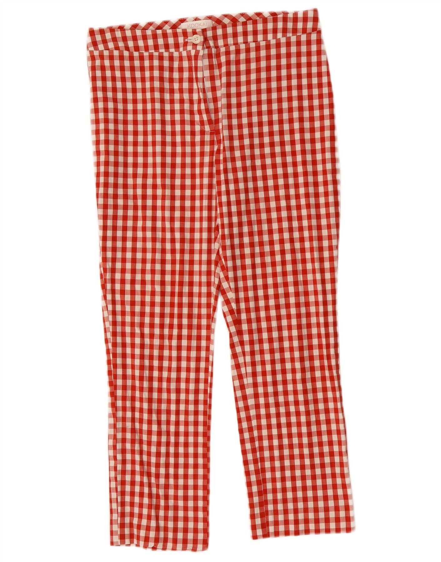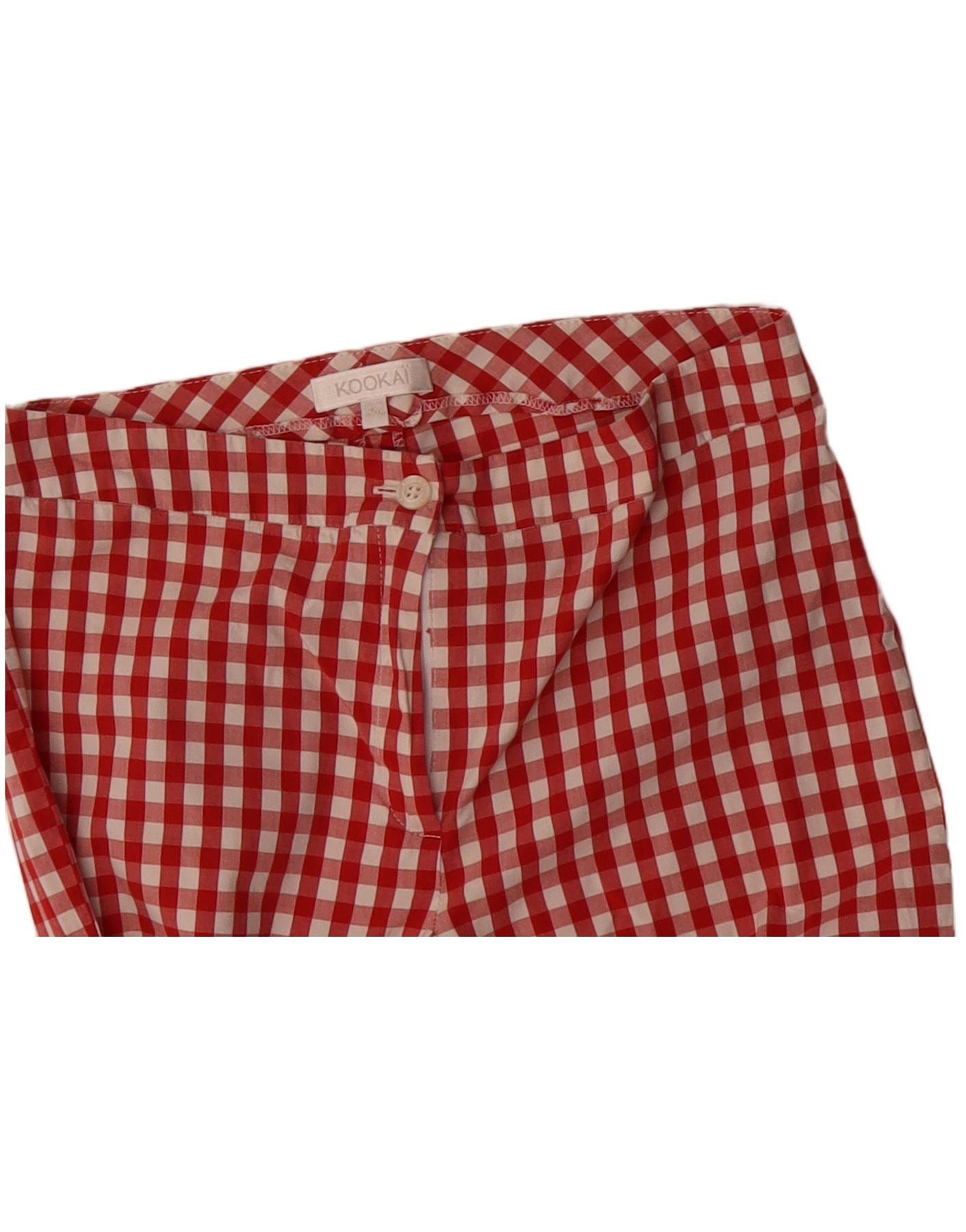KOOKAI Womens Slim Cropped Trousers EU 38 Medium W28 L23 Red Gingham