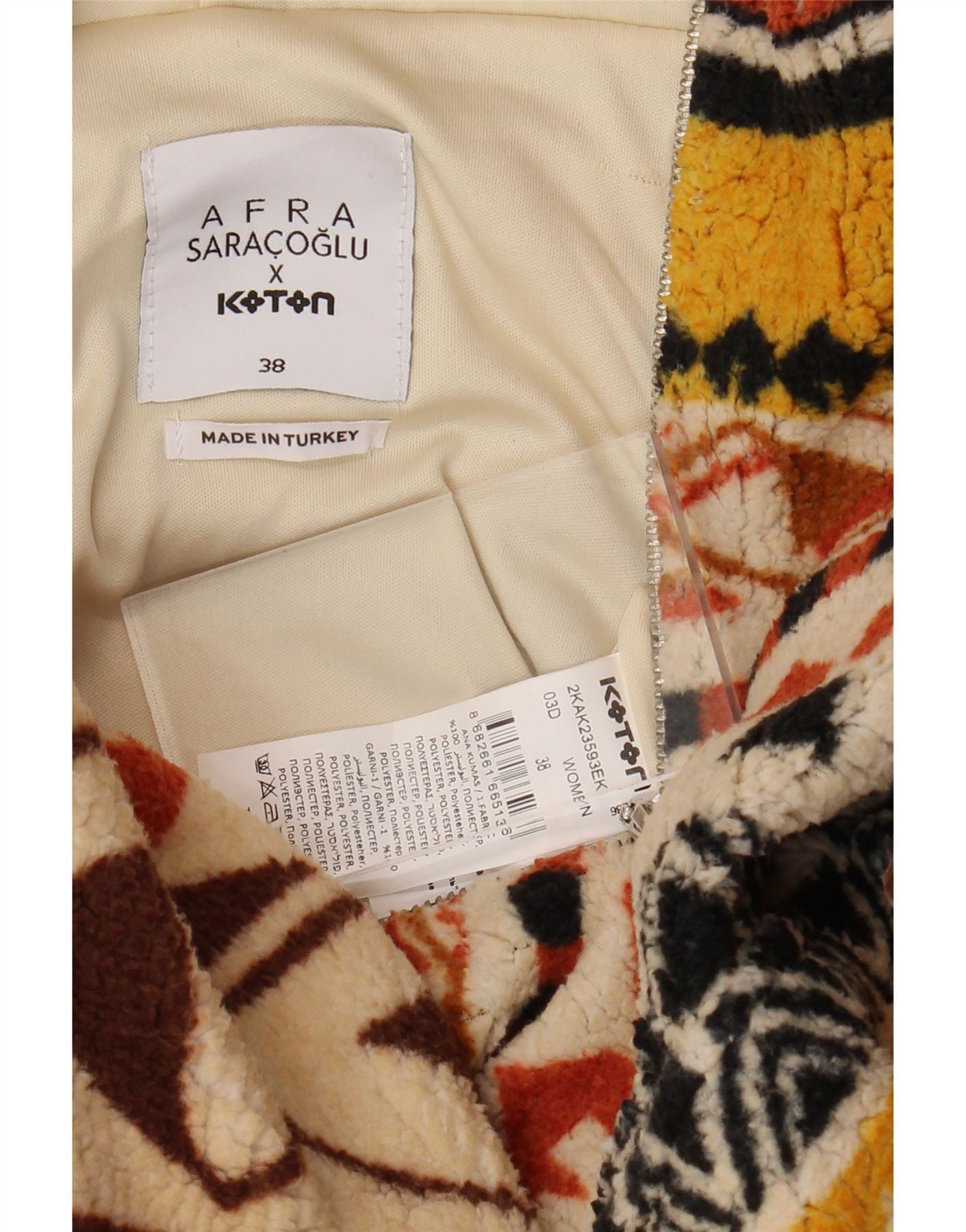 KOTON Женский флисовый джемпер оверсайз с капюшоном EU 38, средний разноцветный