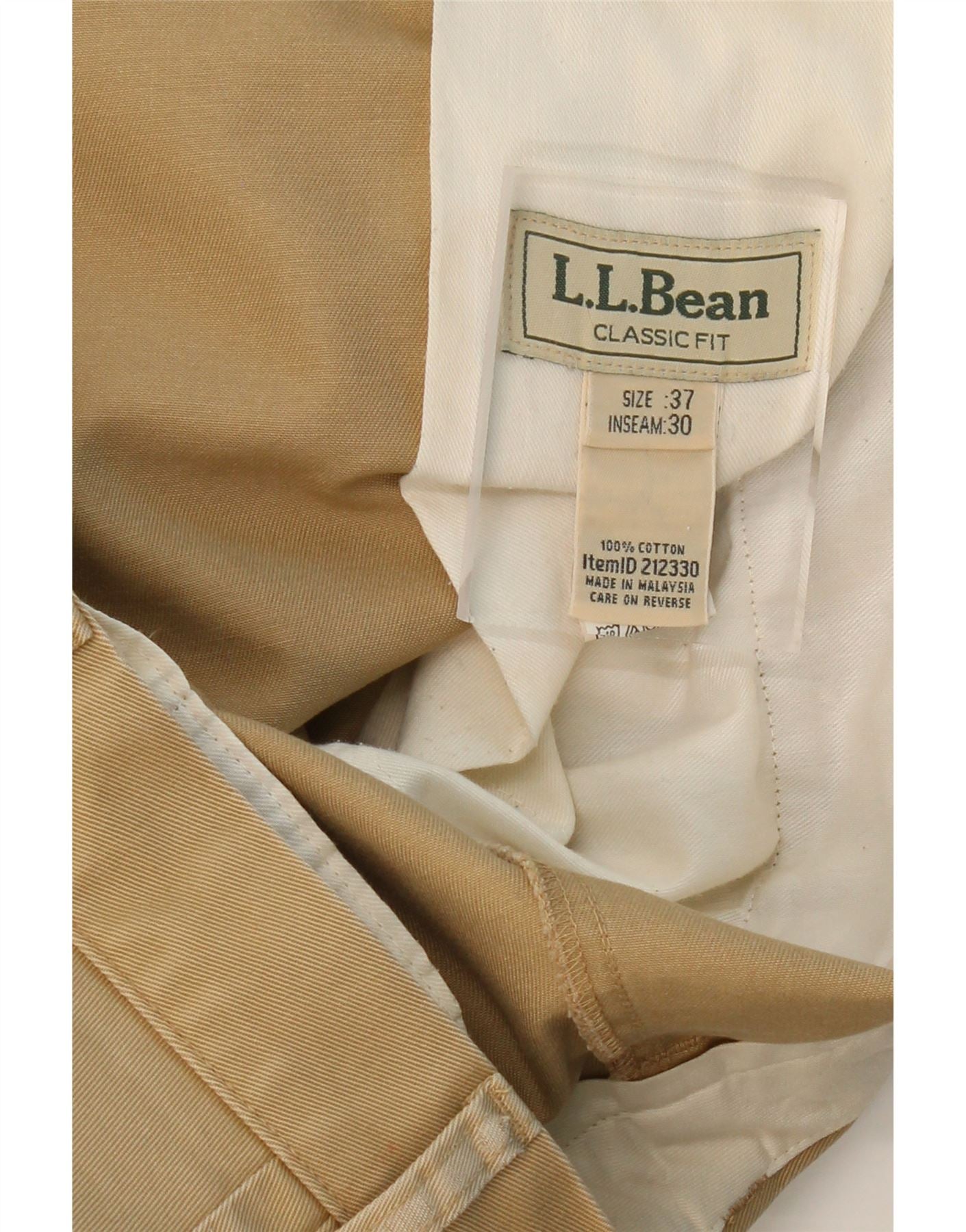 L.L.BEAN Mens Classic Fit Straight Chino Trousers W37 L30 Beige Cotton