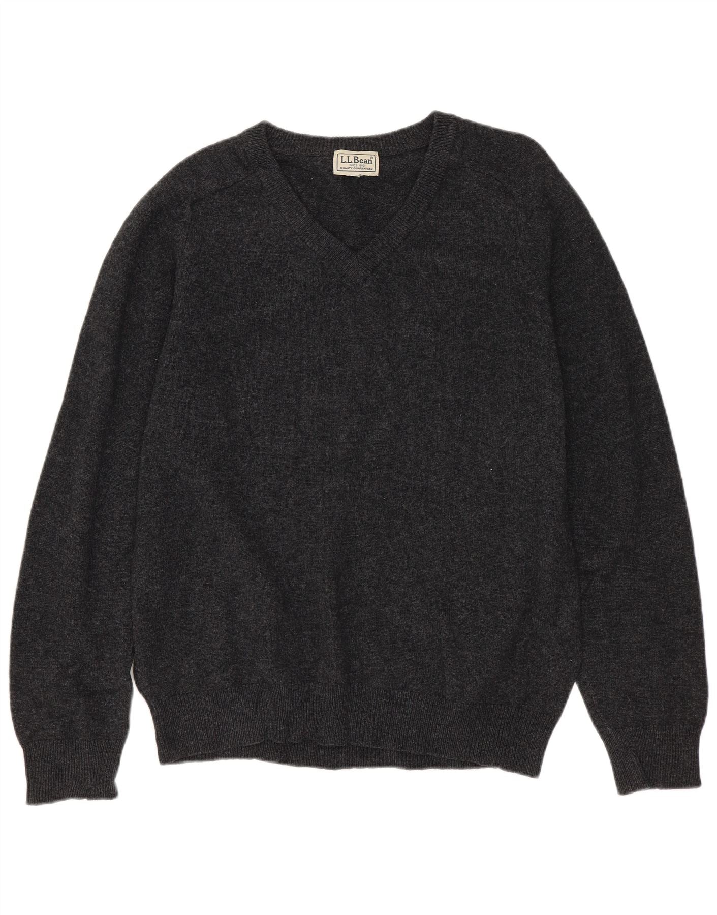 Женский джемпер с v-образным вырезом L.L.BEAN UK 16, большой серый, шерсть