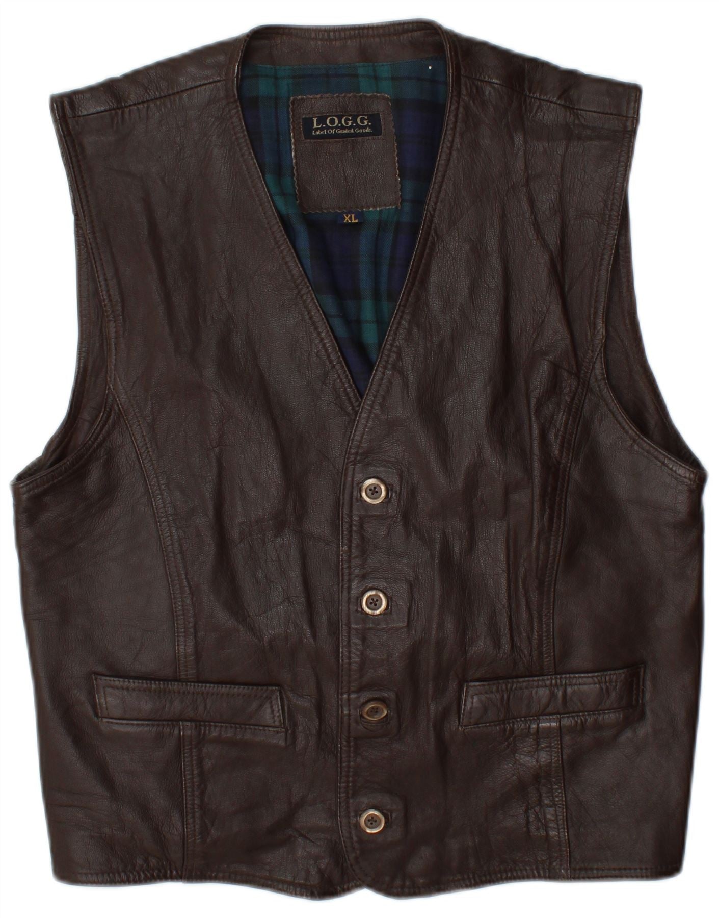 Мужской кожаный жилет L.O.G.G XL коричневый кожаный в клетку