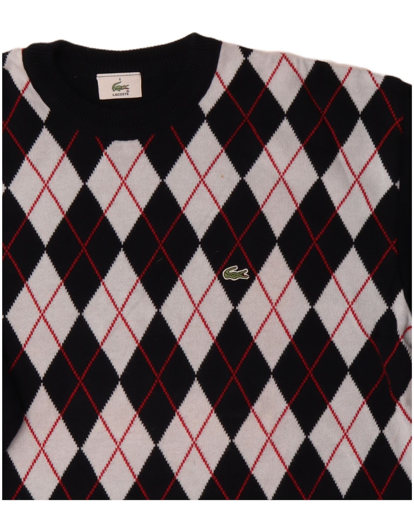 Мужской свитер Lacoste с круглым вырезом, размер 6 XL, темно-синий с узором аргайл/бриллиант