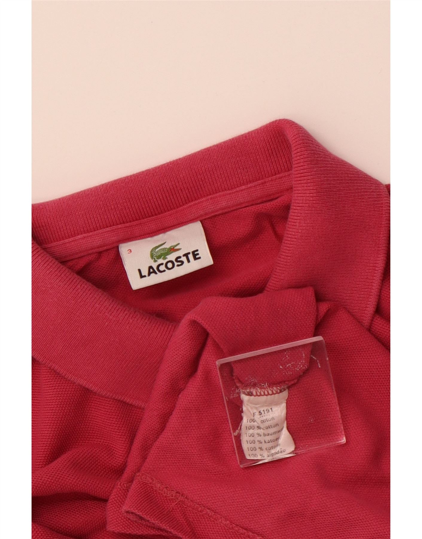 Мужская рубашка-поло с длинным рукавом LACOSTE, размер 3, маленькая, розовая, хлопок