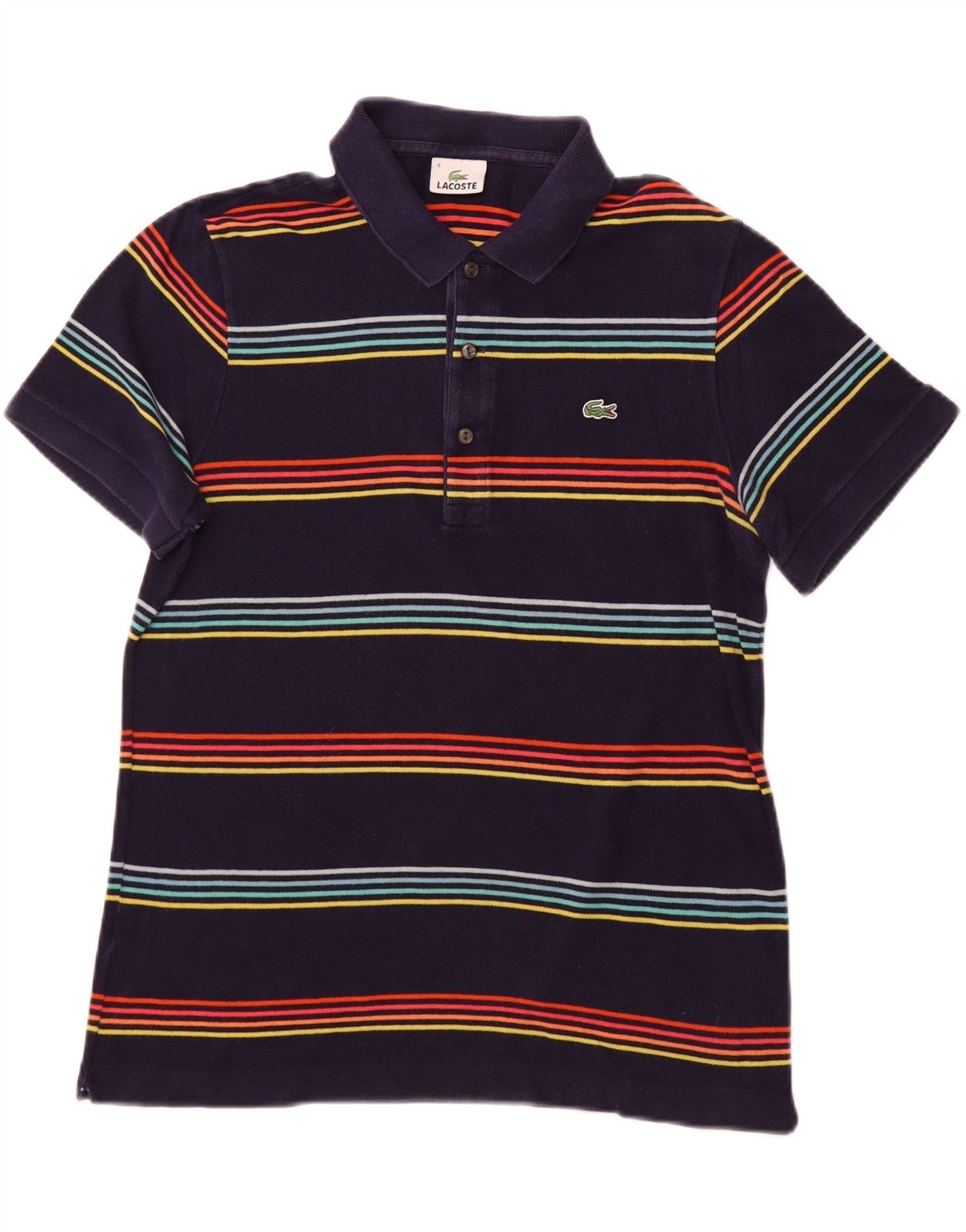 Мужская рубашка-поло LACOSTE, размер 4, средний размер, темно-синяя полоска, хлопок