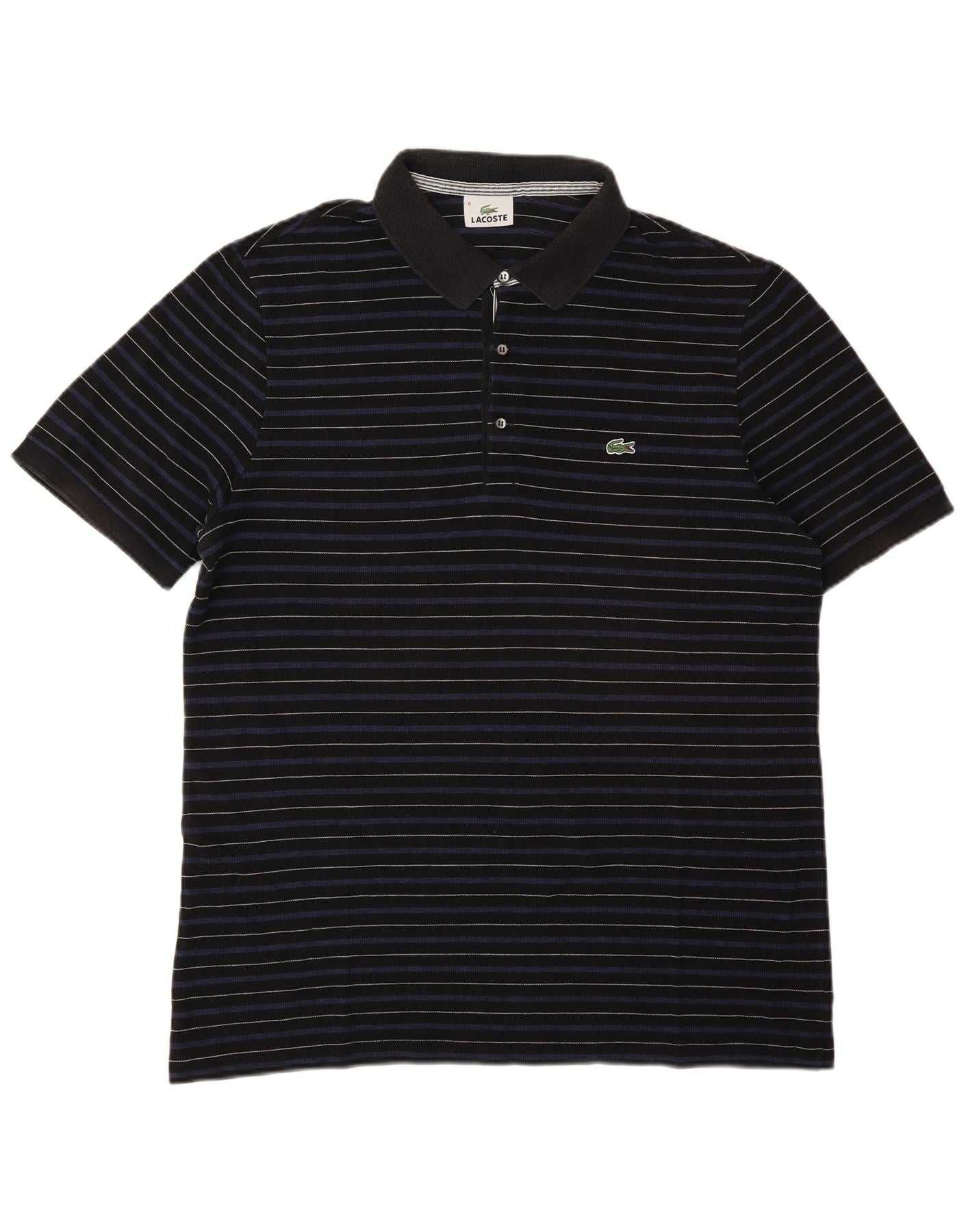 - Описание ИИ: Мужская рубашка-поло Lacoste изготовлена из мягкой ткани из смеси хлопка и лиоцелла. Он имеет изысканный полосатый узор черного цвета с тонкими контрастными линиями. Знаменитый вышитый логотип Lacoste украшает грудь. Классический вырез с воротником и планка на пуговицах подчеркивают верх. Короткие рукава и стандартный крой обеспечивают комфортное ношение. Этот дизайн предлагает вневременной стиль и универсальность для любого повседневного случая.