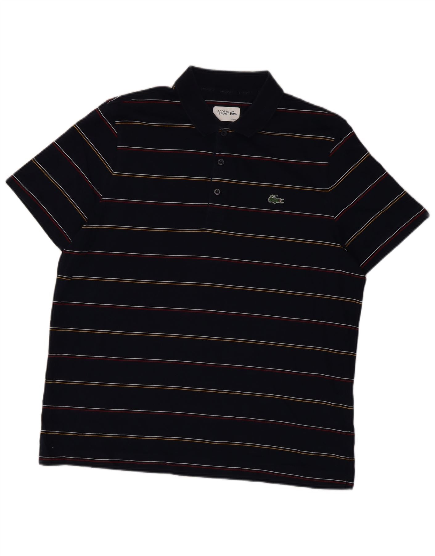 Мужская рубашка-поло LACOSTE, размер 7, 2XL, темно-синяя полоска, хлопок