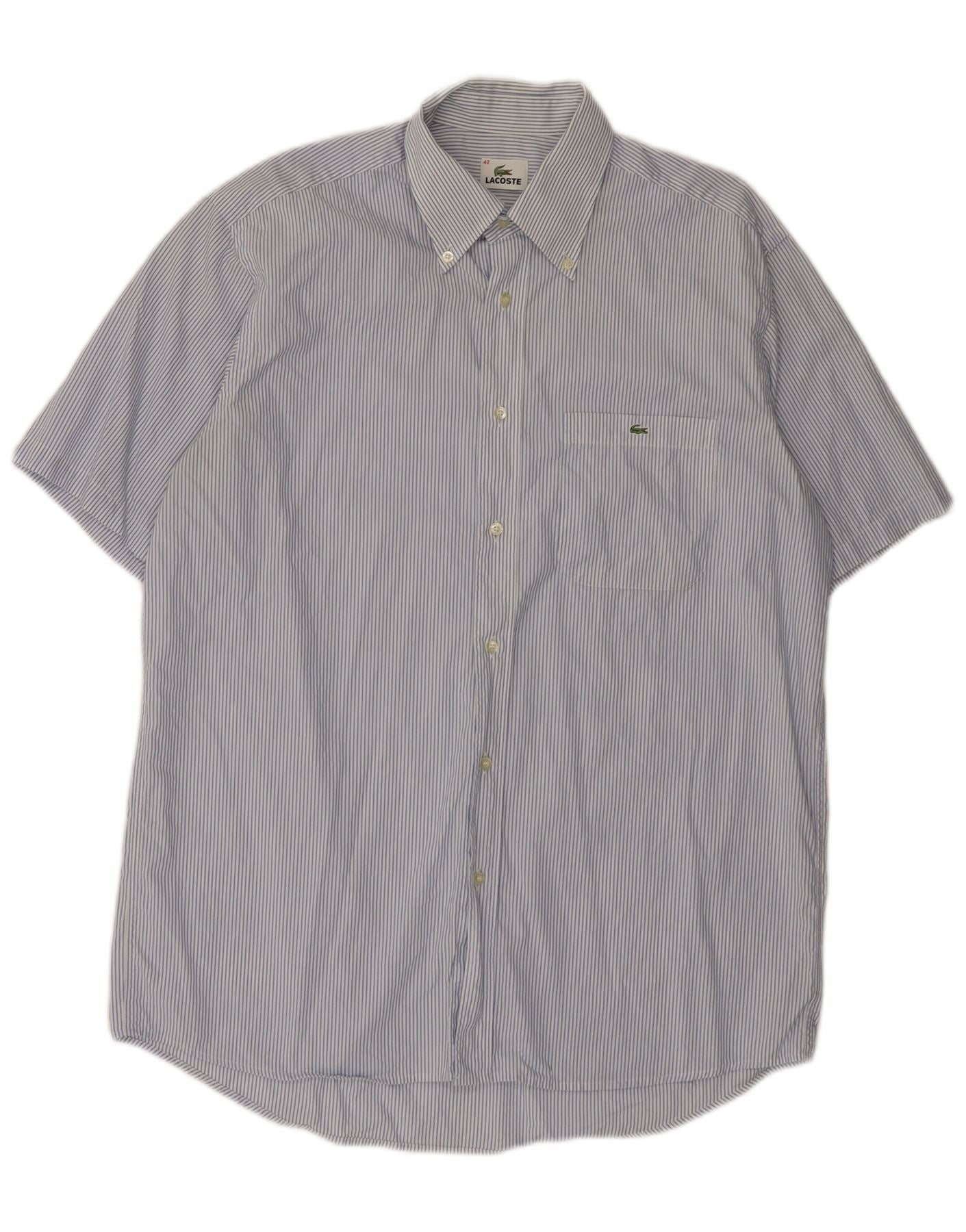LACOSTE Мужская рубашка с коротким рукавом, размер 42, большая синяя полоска, хлопок