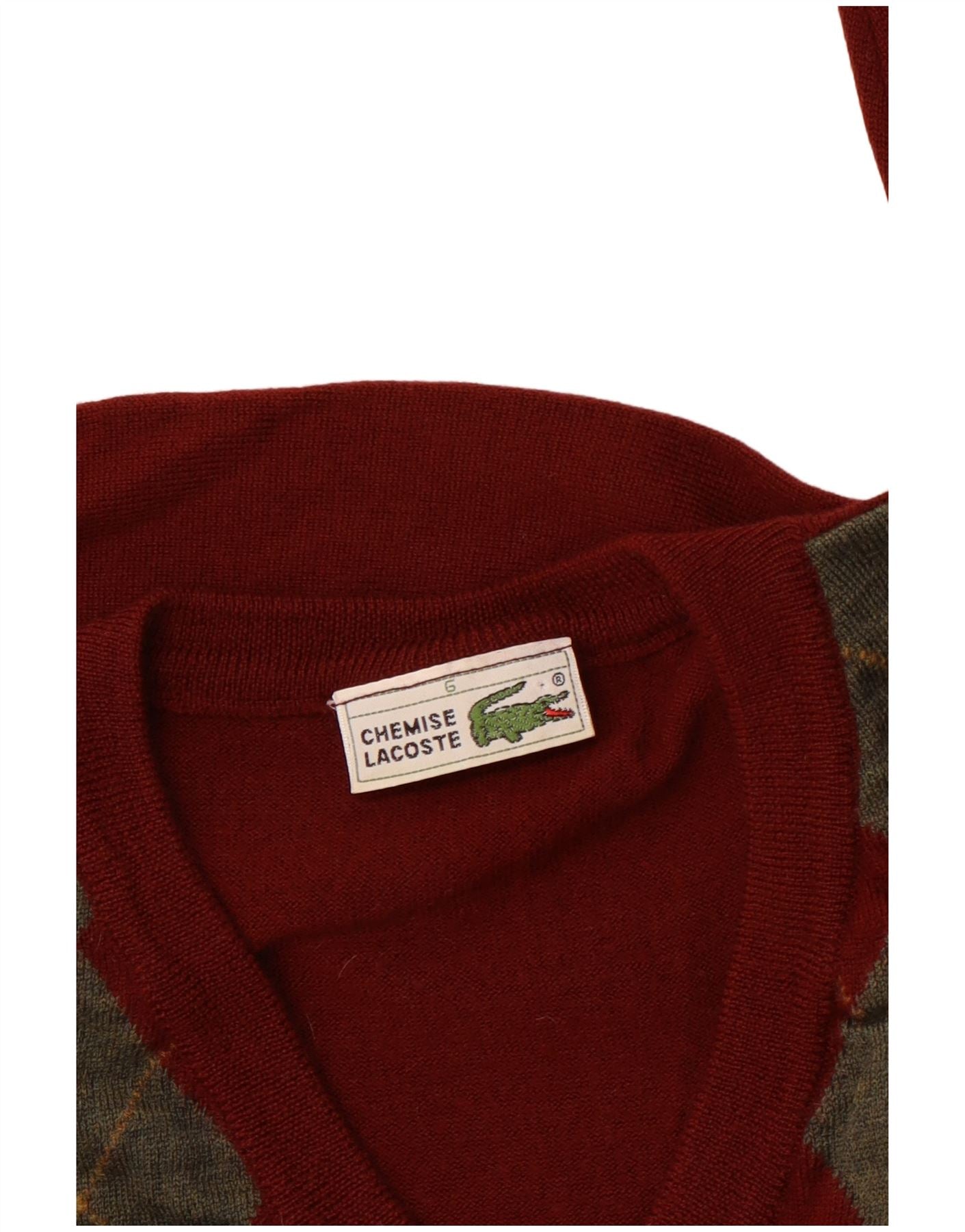LACOSTE Мужской джемпер с v-образным вырезом, размер 6 XL, красный аргайл/бриллиант