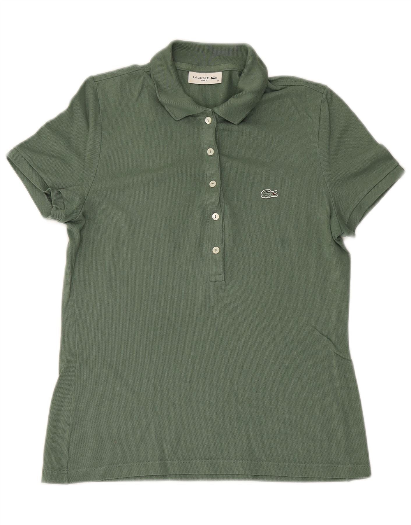 LACOSTE Женская рубашка поло приталенного кроя, размер 38, средний хаки