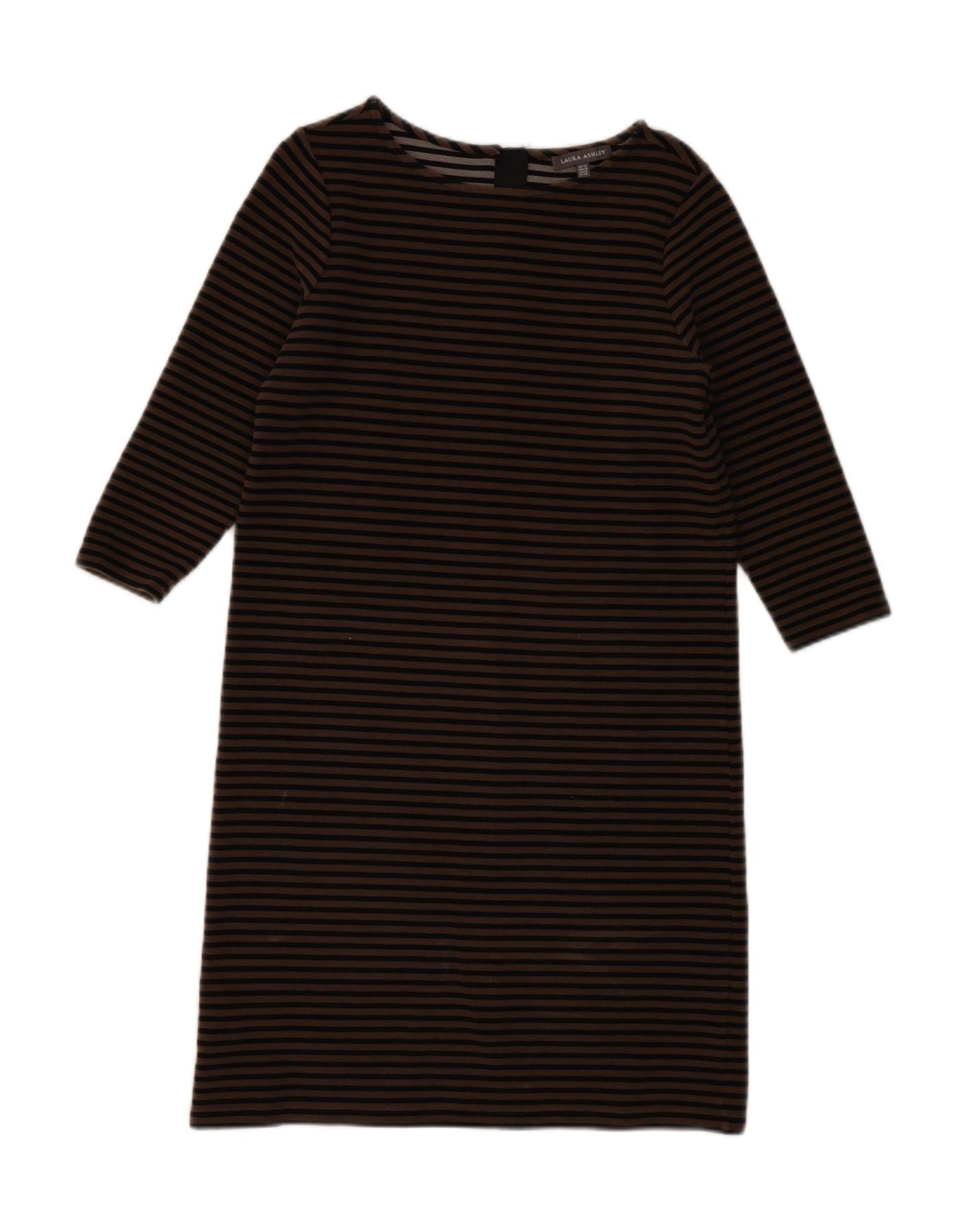 LAURA ASHLEY Женское платье прямого кроя с рукавом 3/4, Великобритания 12, средний бежевый в полоску