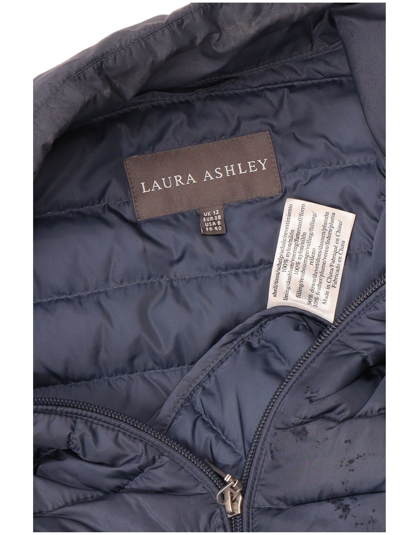 LAURA ASHLEY Womens Padded Jacket UK 12 Medium Navy Blue Polyester