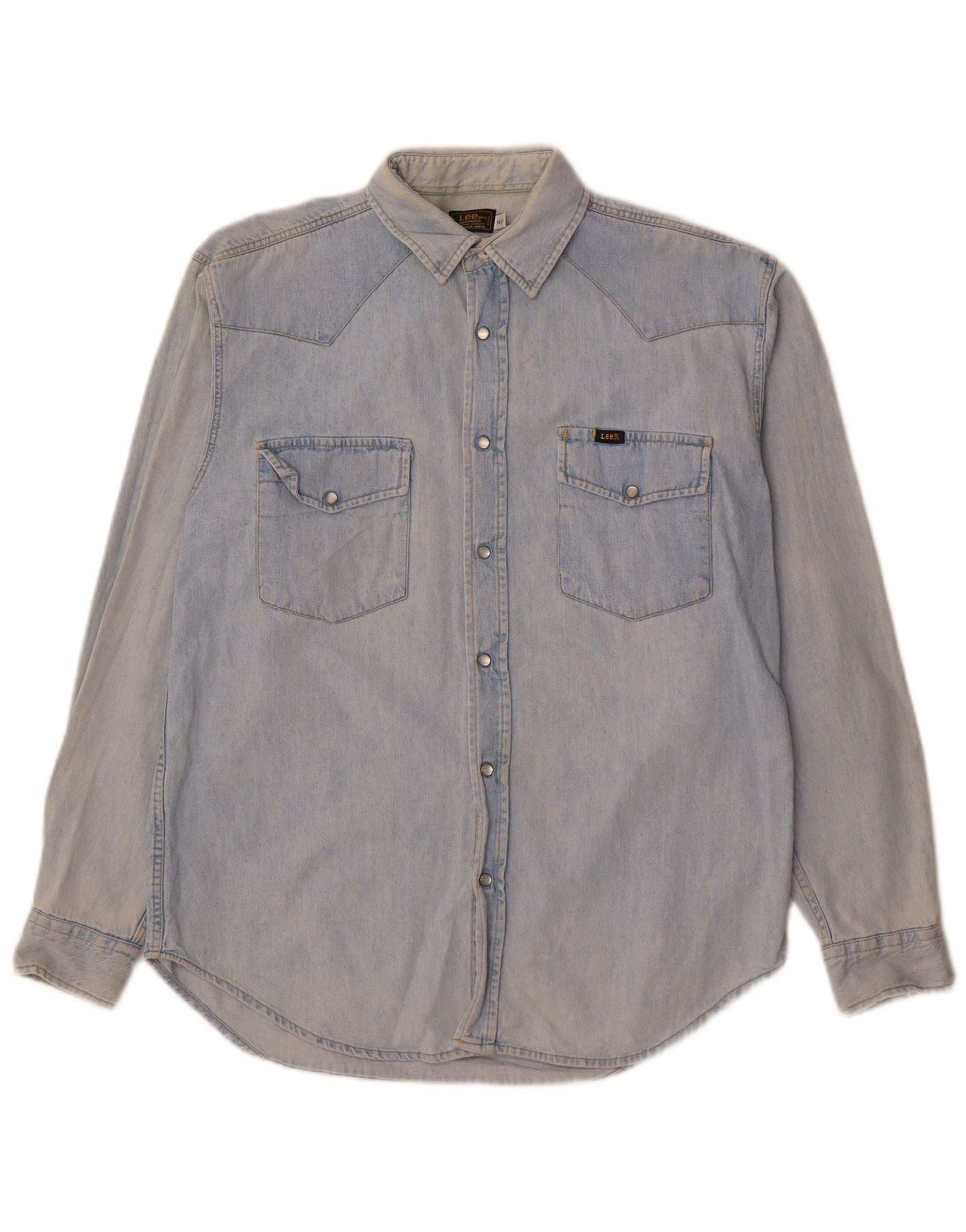 - AI Description: This Lee boys denim shirt is crafted from durable blue denim. It features a classic collared neckline and long sleeves. The button-up front and chest pockets add authentic Western styling. A regular fit ensures comfortable wear and easy movement. This versatile piece is perfect for everyday adventures.