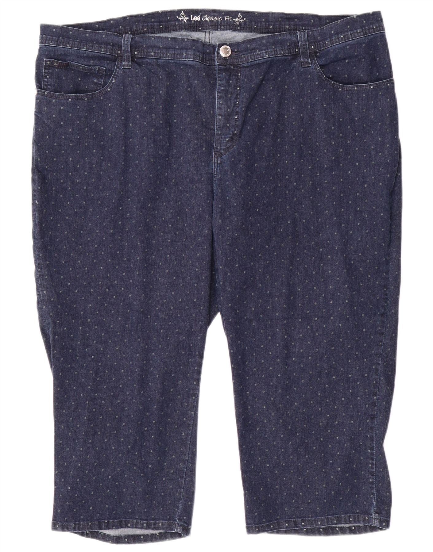 Женские джинсы-капри классического кроя LEE США 24 4XL W48 L20, хлопок в синие пятна