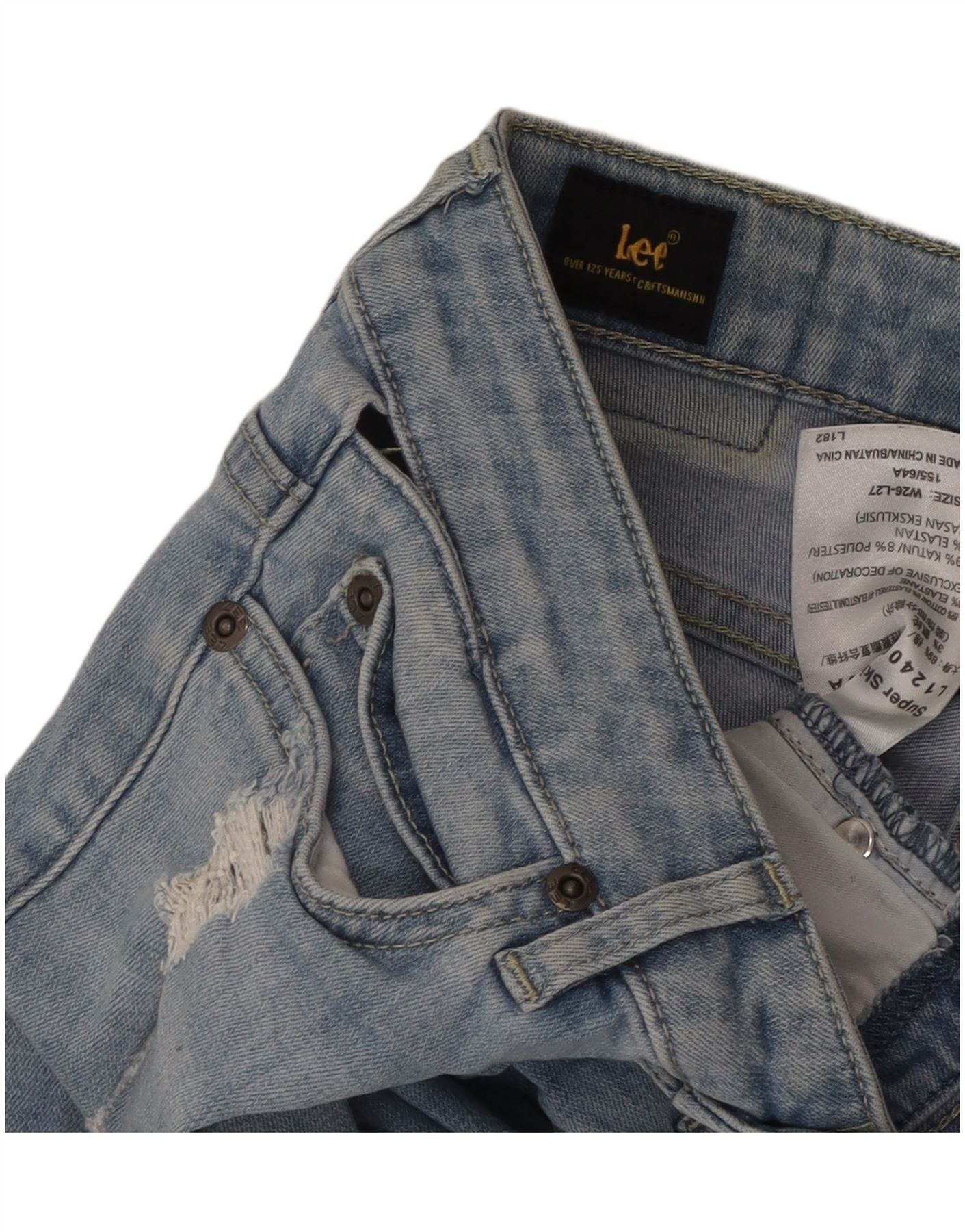 Женские потертые суперузкие джинсы LEE W26 L27, синий хлопок