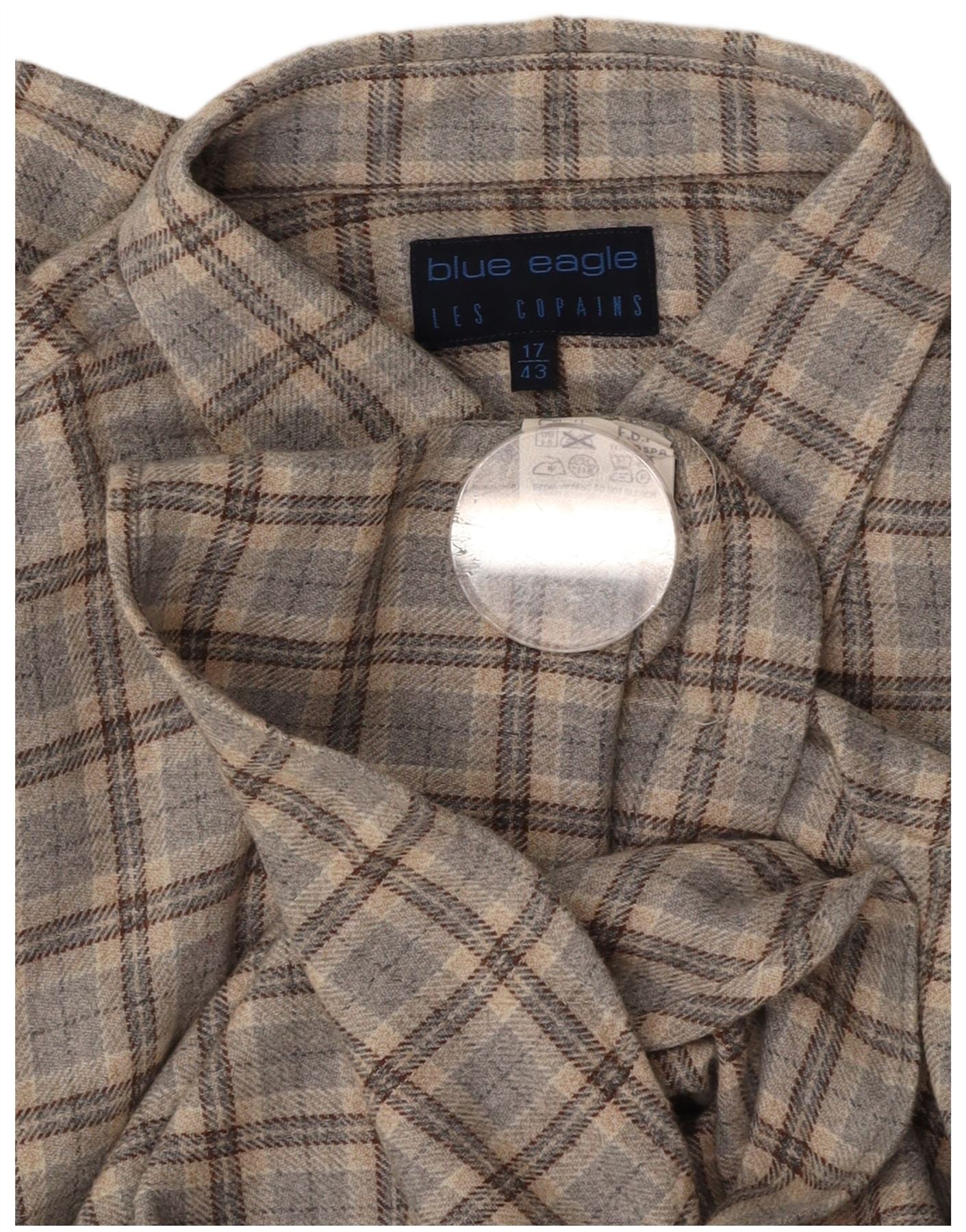 LES COPAINS Мужская фланелевая рубашка, размер 17 43 XL, серая клетка, хлопок