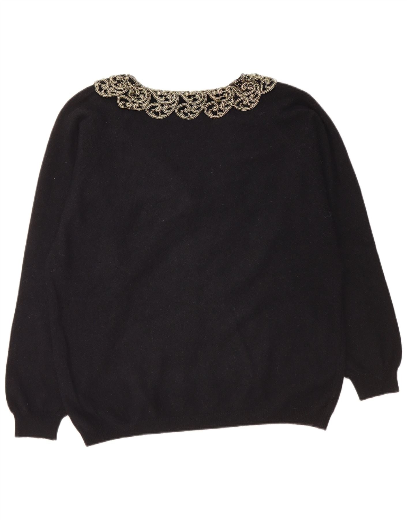 LETIZIA L. Женский джемпер с v-образным вырезом, Великобритания 16, большой черный, шерсть с пейсли